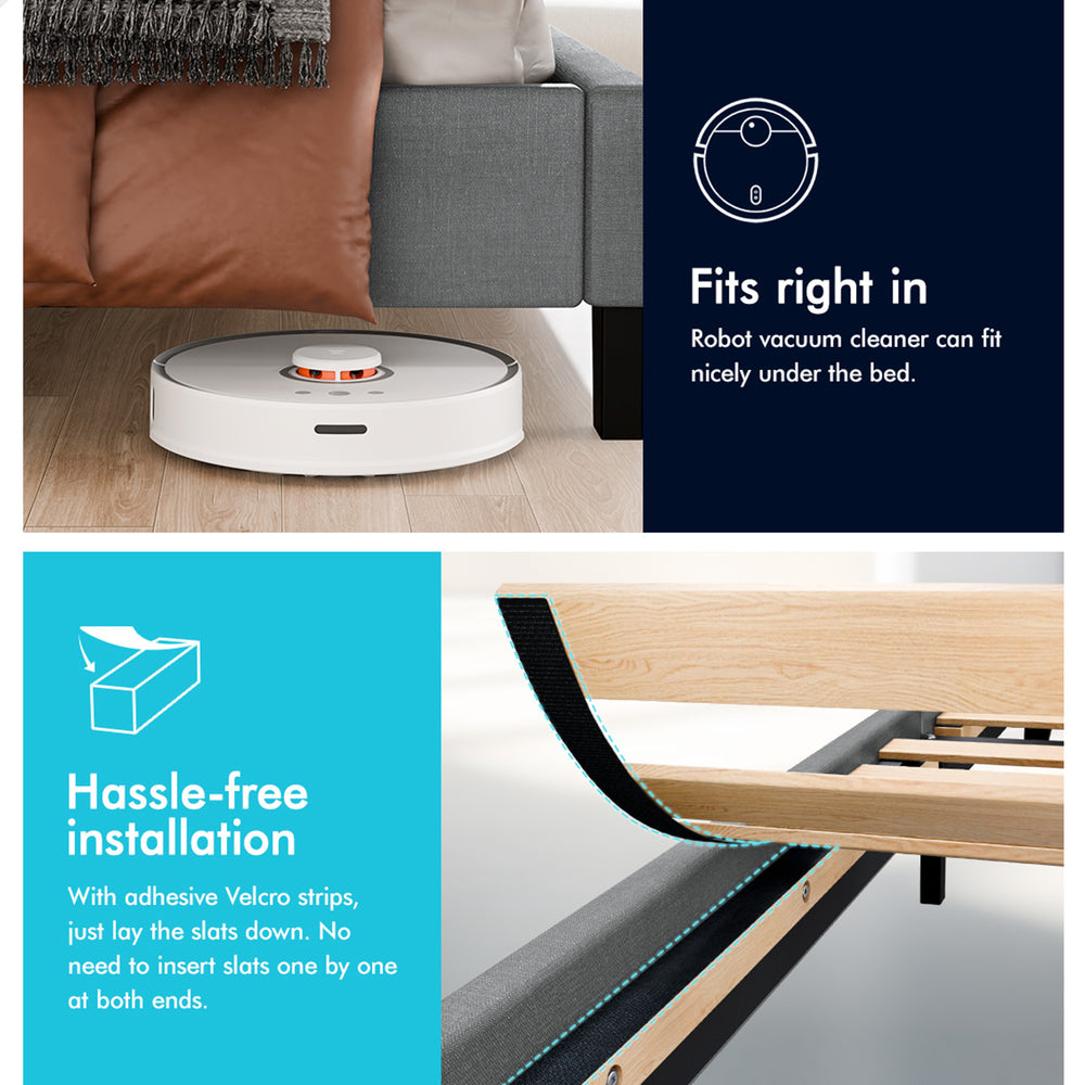 * Convenient bed slats with adhesive Velcro strips - no need to insert slats one by one at both end caps