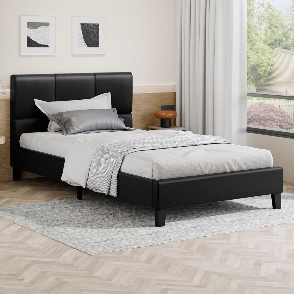 ALFORDSON Bed Frame Single Size Wooden Platform Mattress Base Leather Black