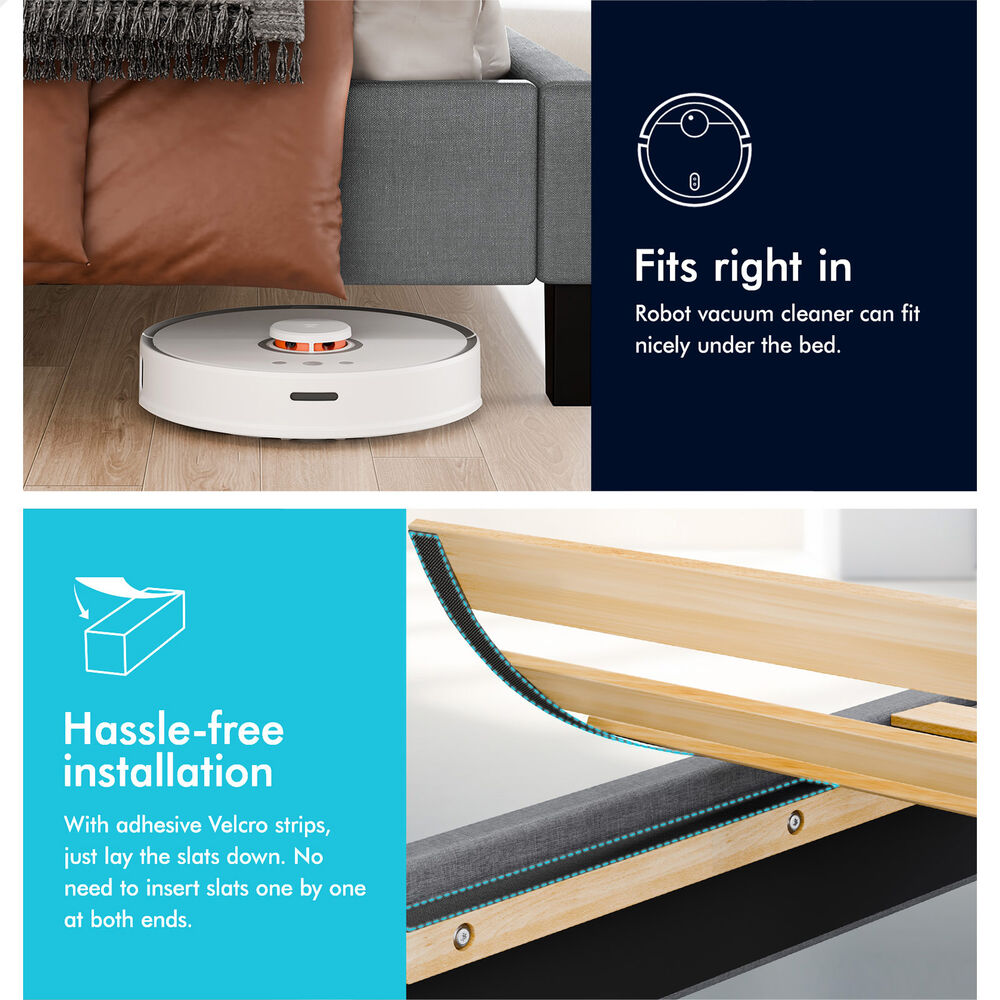 Keep it breezy - The mattress base will create a space where air can circulate freely. This helps you avoid any unwanted cold drafts and allows for better temperature regulation while you sleep on your mattress. The elevating design not only allows robot vacuum cleaner to go through under the bed, but also provides you with an additional storage space.