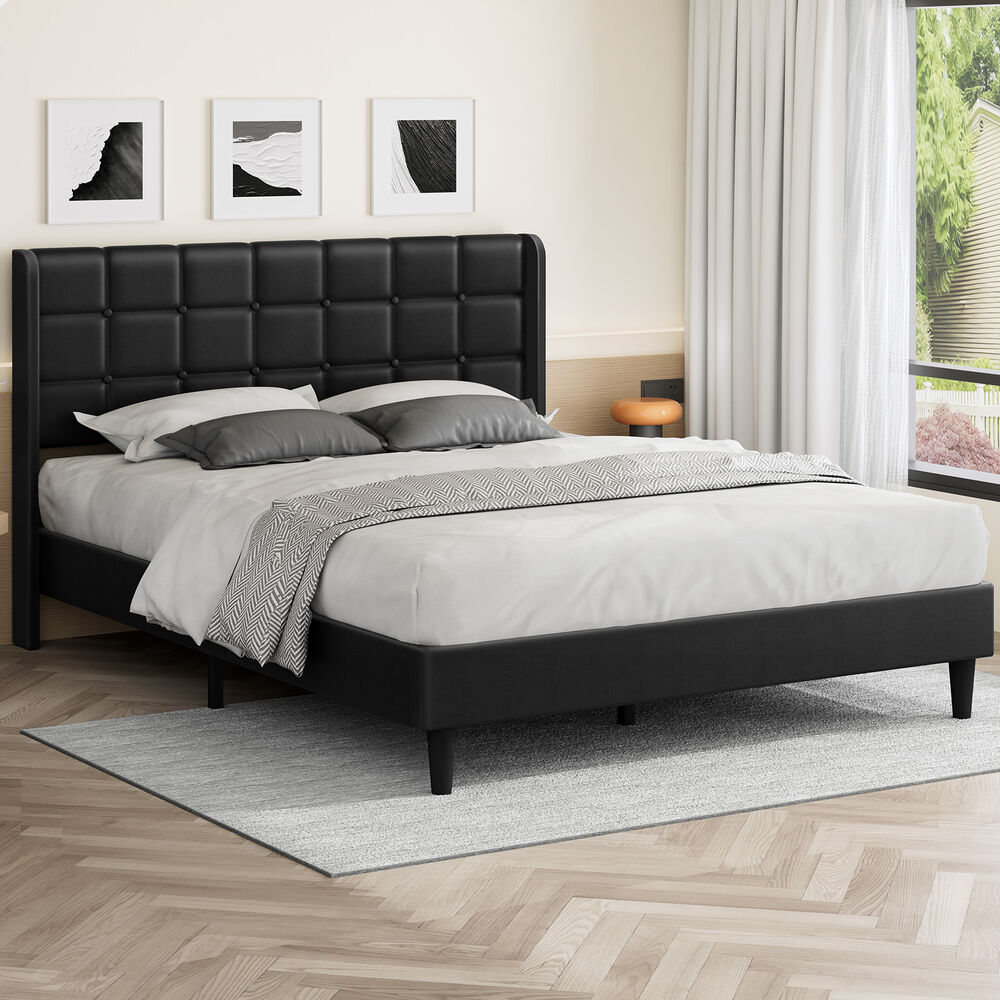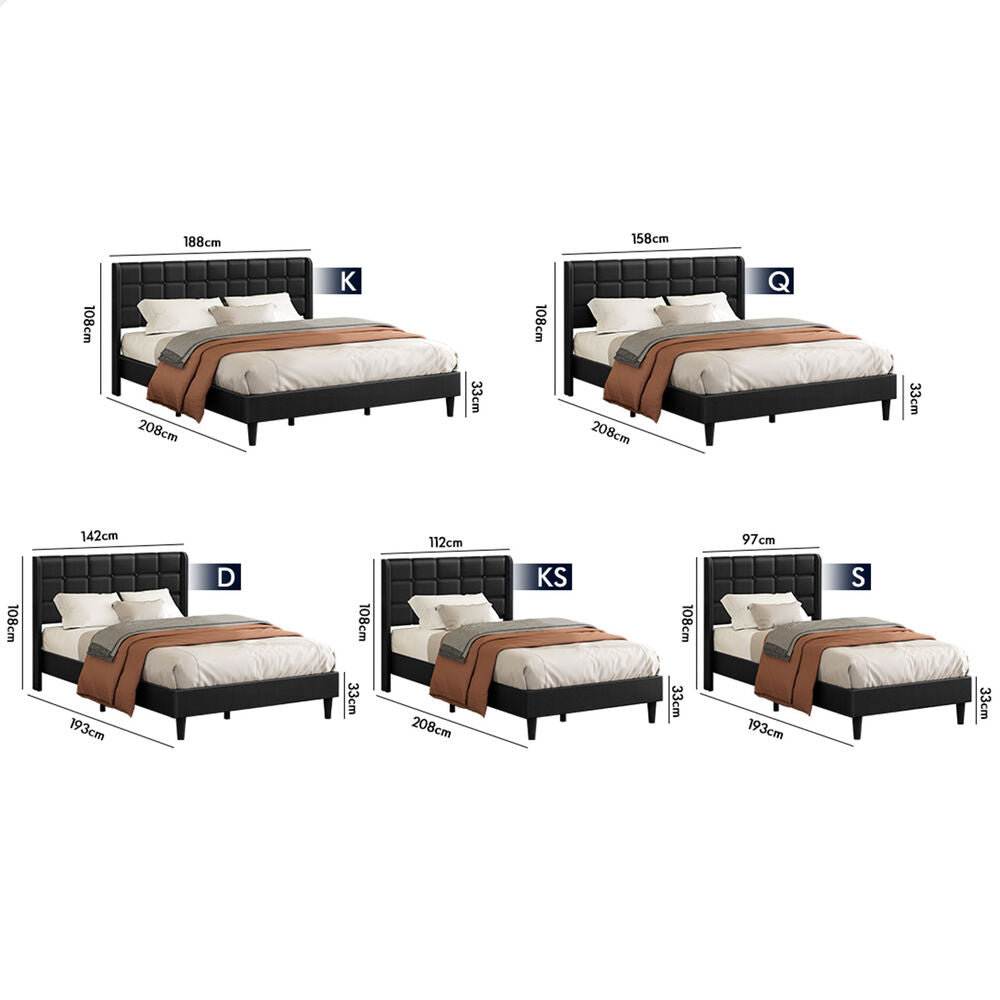 ALFORDSON Bed Frame King Size Upholstered Wingback Base Black Leather SARAH