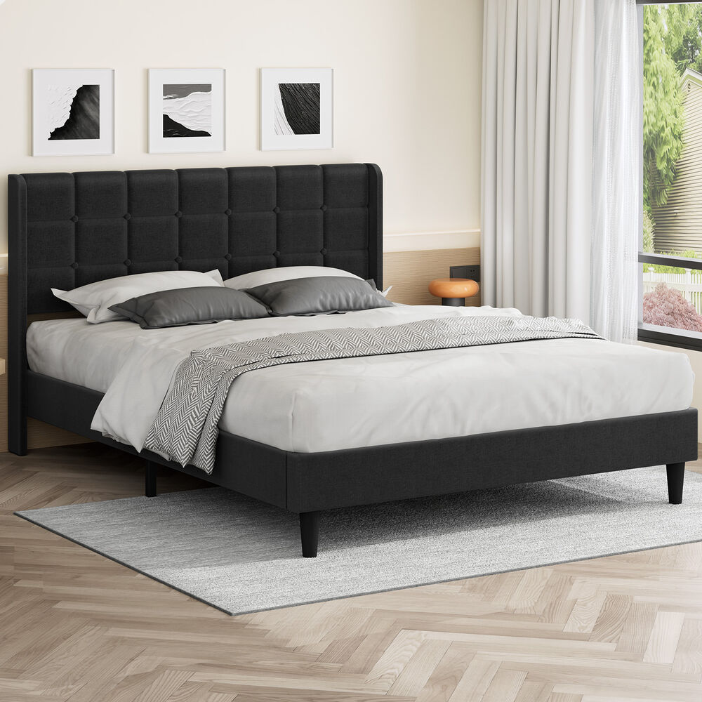 ALFORDSON Bed Frame King Size Upholstered Wingback Base Charcoal Fabric SARAH