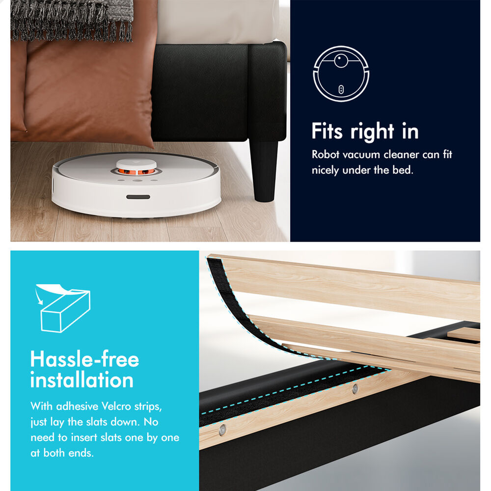 Quality counts - Constructed of durable wood slats and reinforced with exclusive X-support frame, this bed frame provides you with full sense of security. What's more, with adhesive Velcro strips, you can just lay the slats down, without inserting slats one by one at both end caps. Enjoy hassle-free installation!
