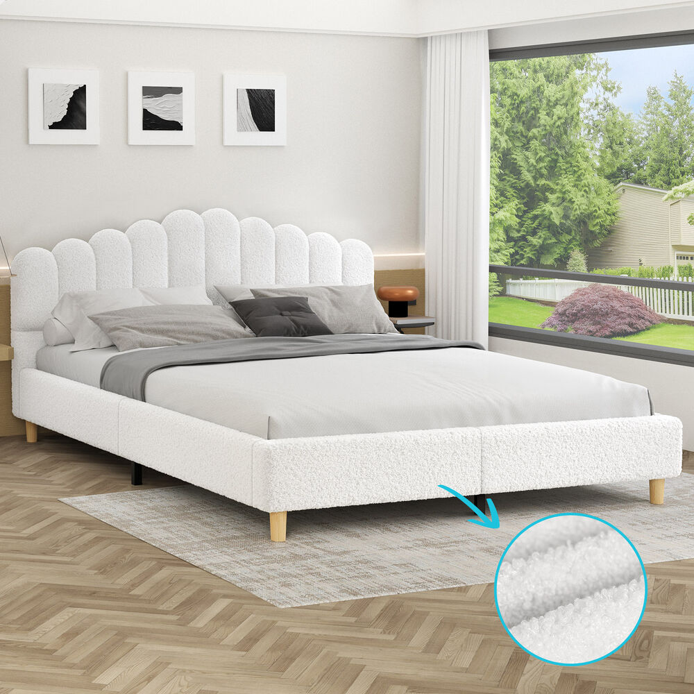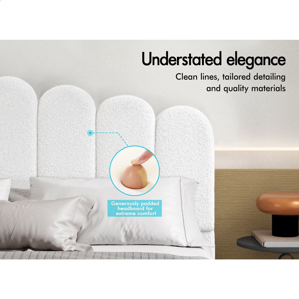 ALFORDSON Bed Frame King Size Upholstered Platform Base White Boucle TANIA