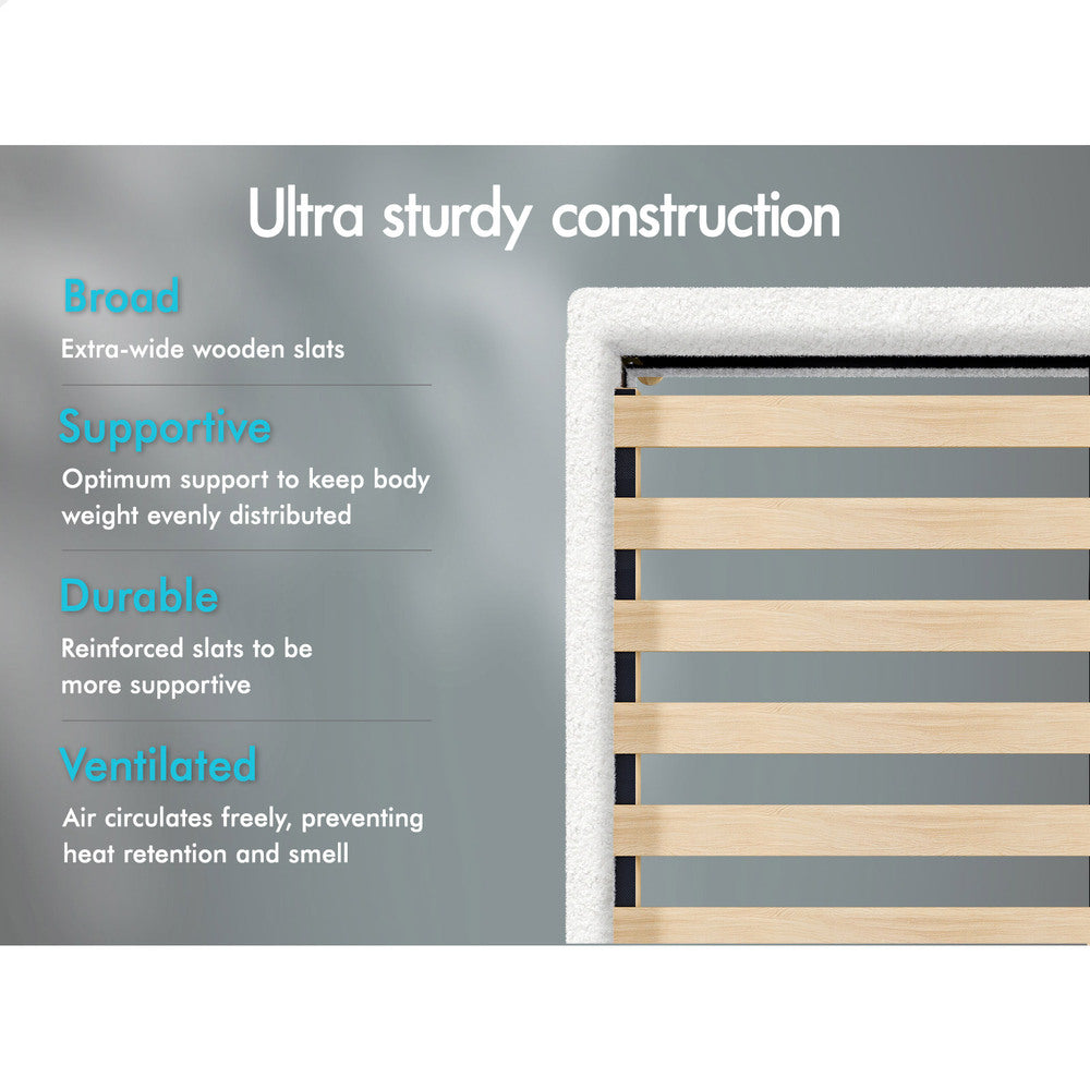 ALFORDSON Bed Frame Queen Size Upholstered Platform Base White Boucle TANIA