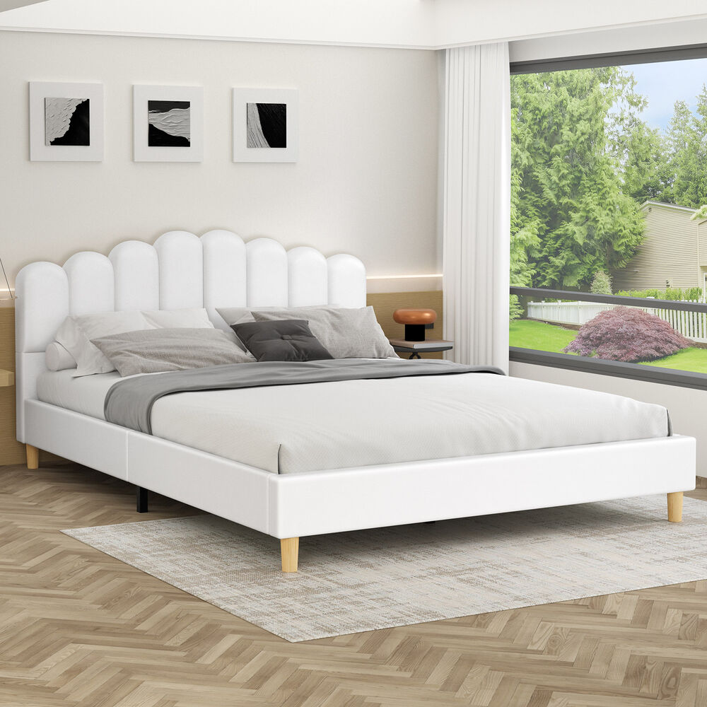 ALFORDSON Bed Frame Queen Size Upholstered Platform Base Leather White TANIA