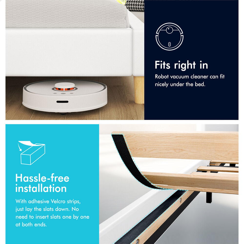 Quality counts - Constructed of durable wood slats and reinforced with exclusive X-support frame, this bed frame provides you with full sense of security. What's more, with adhesive Velcro strips, you can just lay the slats down, without inserting slats one by one at both end caps. Enjoy hassle-free installation!