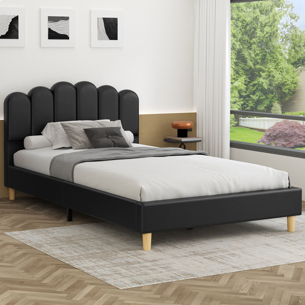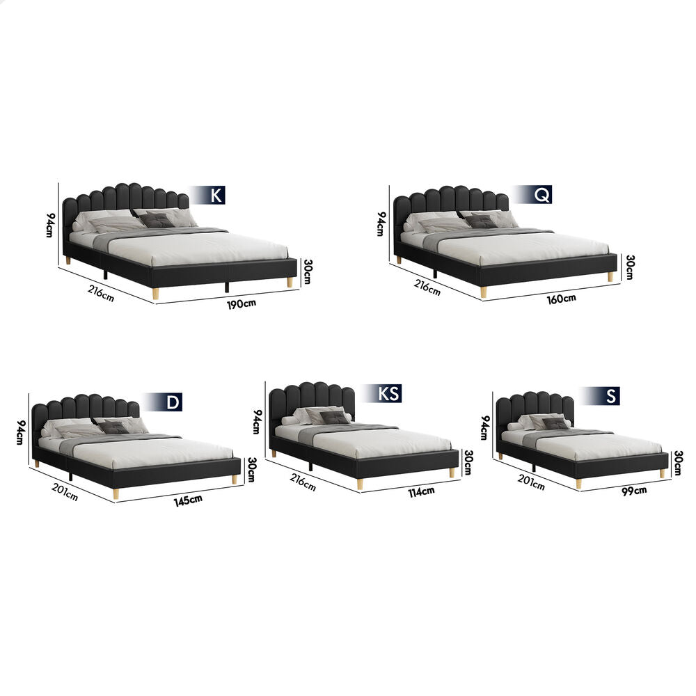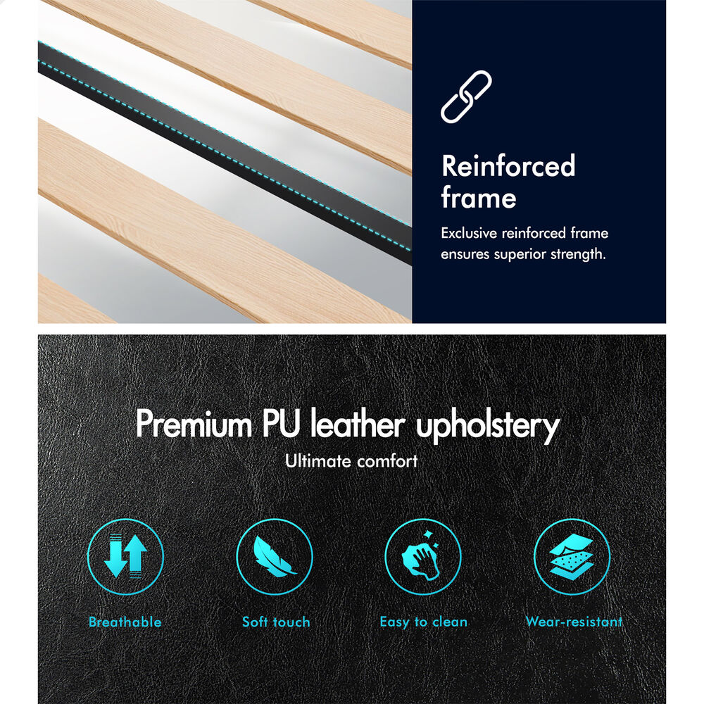 ALFORDSON Bed Frame Single Size Upholstered Platform Base Leather Black TANIA