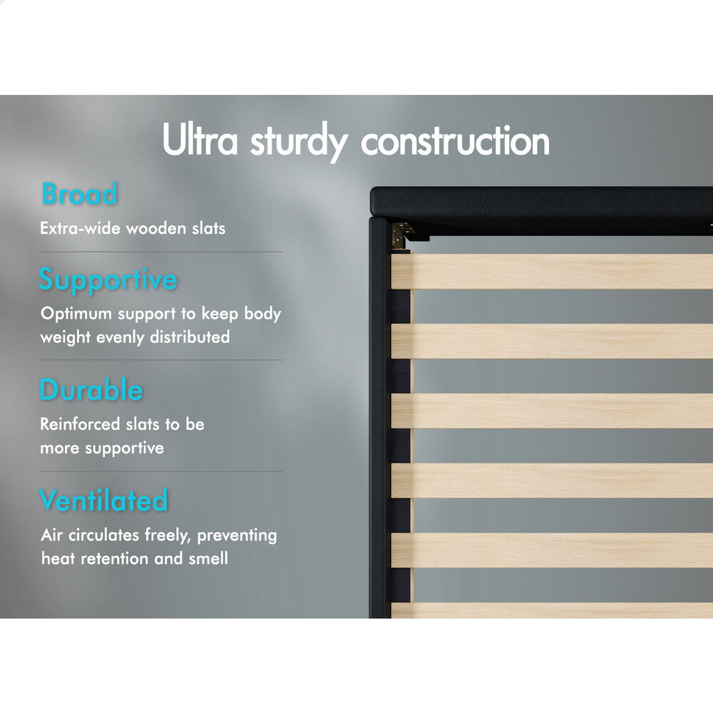 * Convenient bed slats with adhesive Velcro strips - no need to insert slats one by one at both end caps