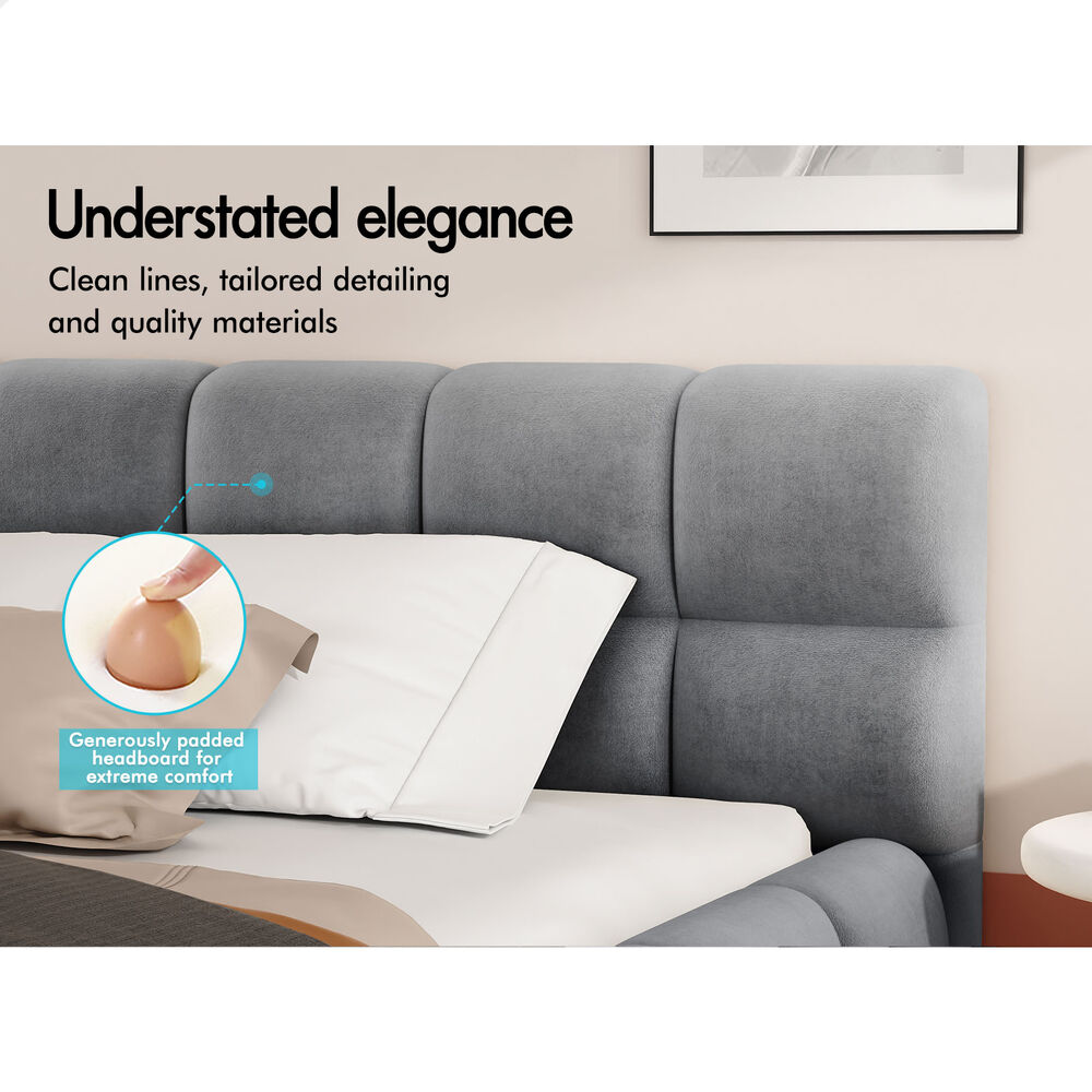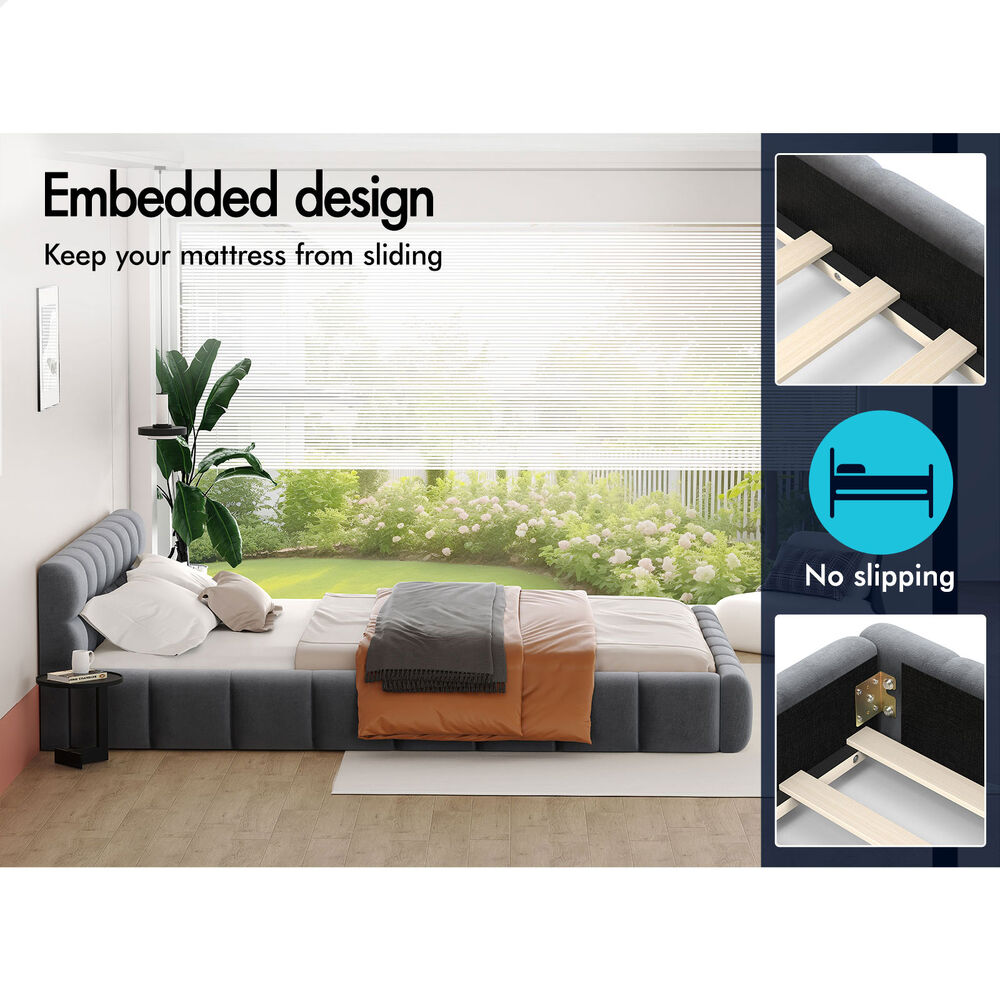 ALFORDSON Bed Frame King Single Tufted Headboard Foundation Grey Velvet TALMON