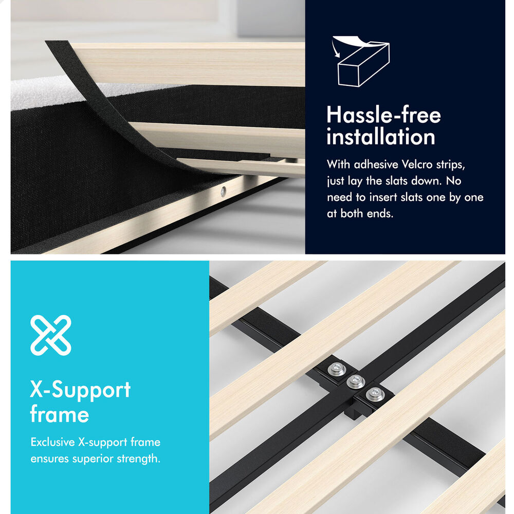 Quality counts - Constructed of durable wood slats and reinforced with exclusive X-support frame, this bed frame provides you with full sense of security. What's more, with adhesive Velcro strips, you can just lay the slats down, without inserting slats one by one at both end caps. Enjoy hassle-free installation!