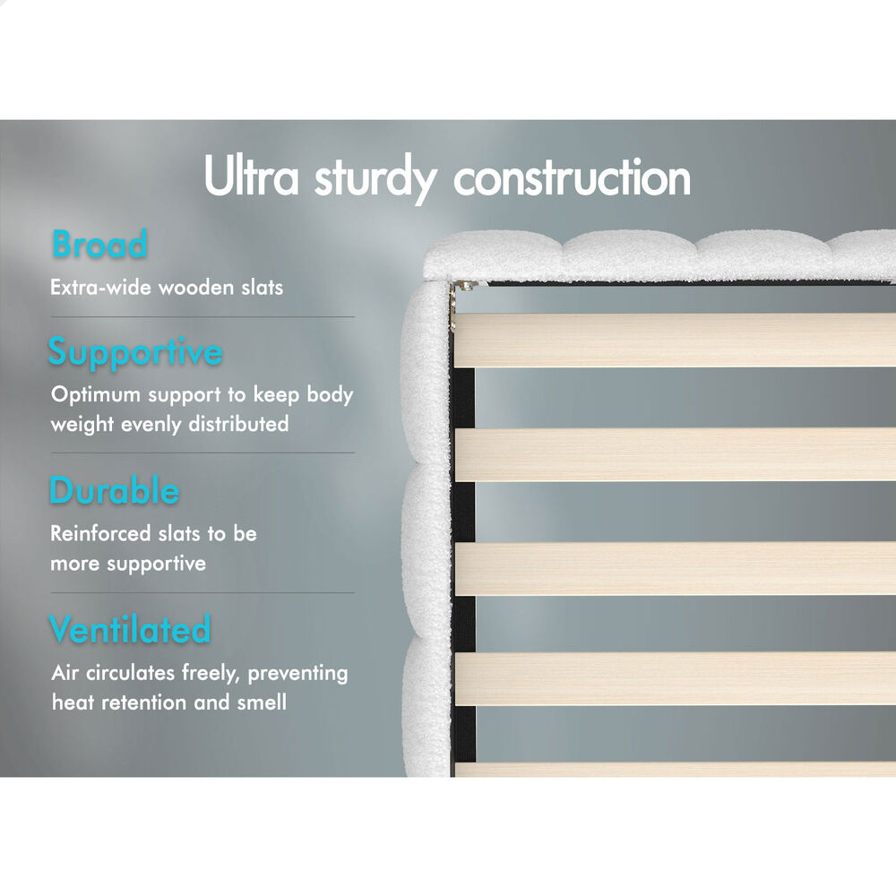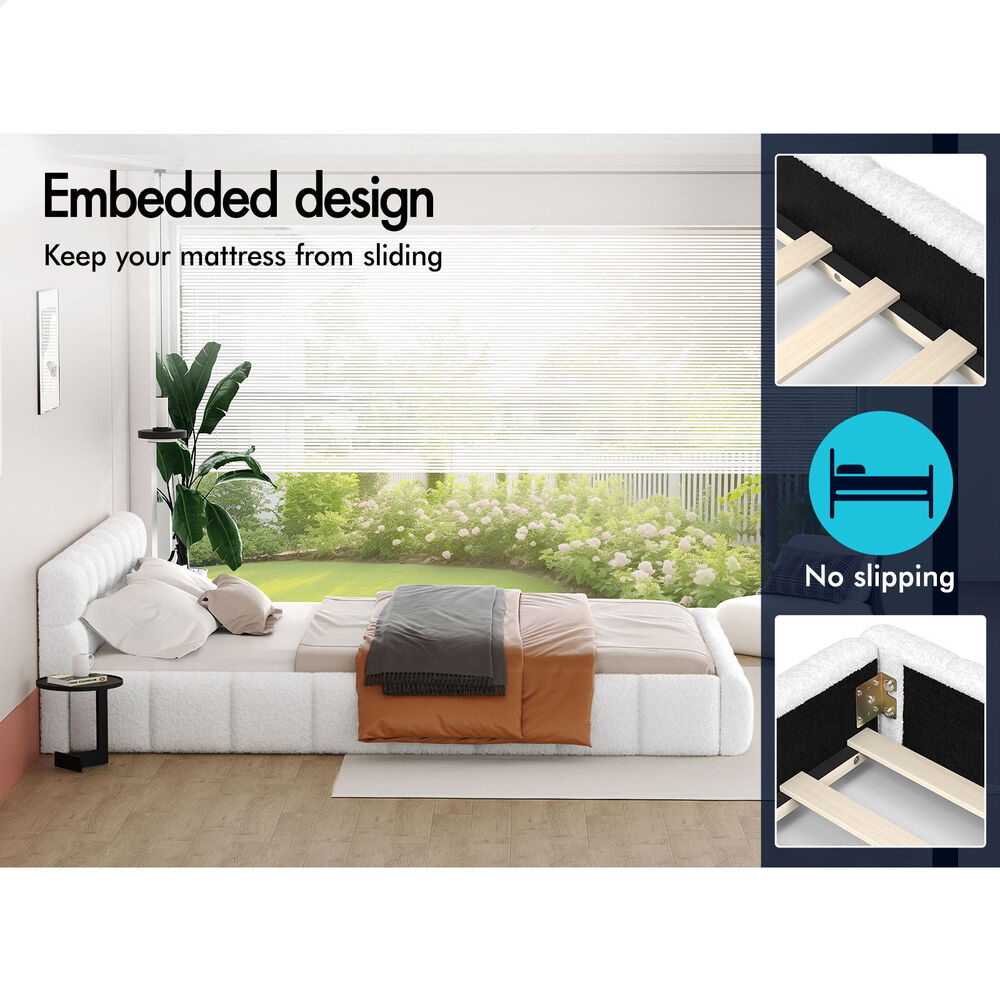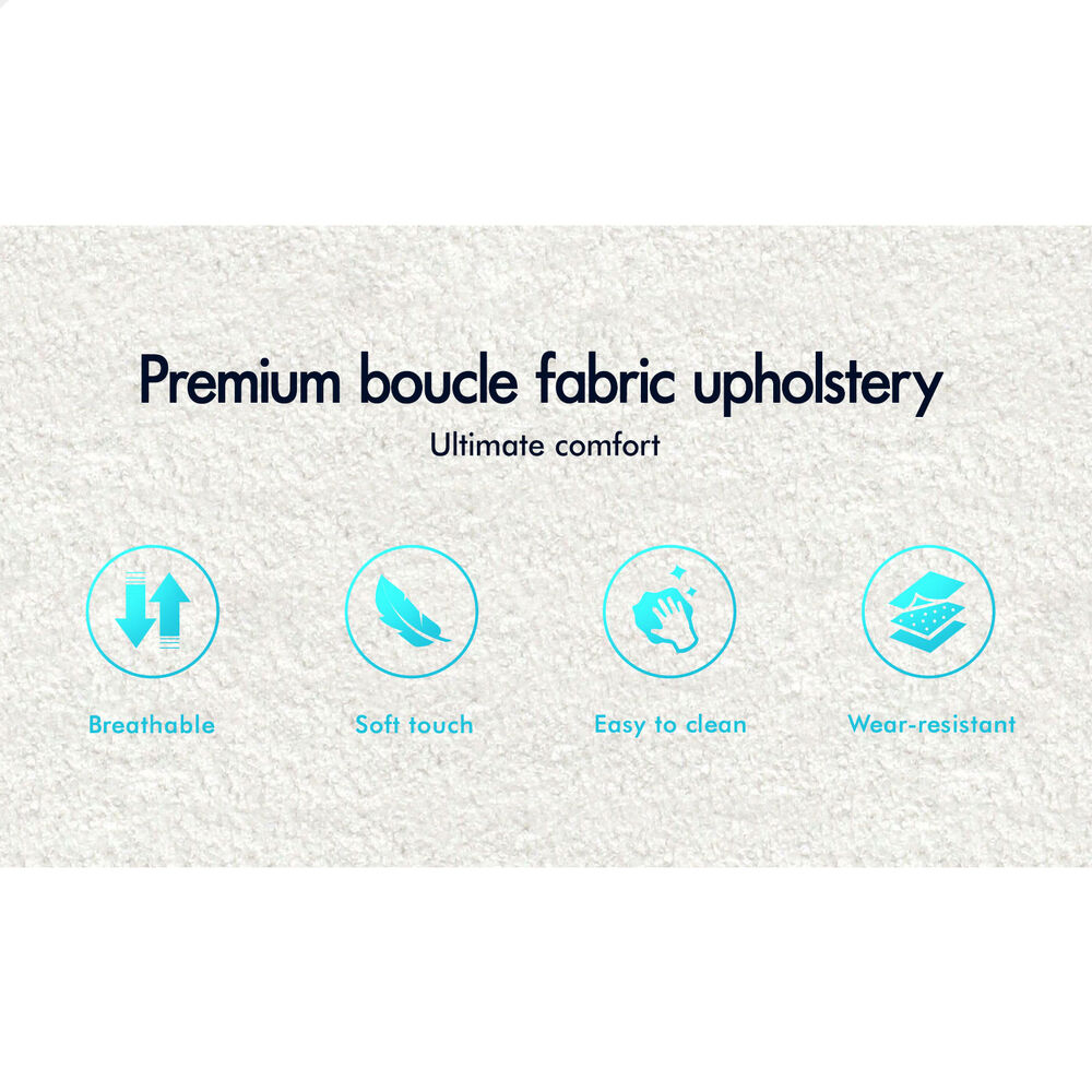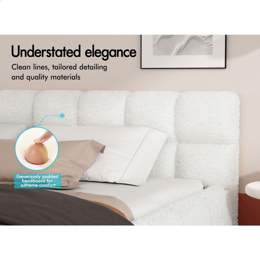 ALFORDSON Bed Frame Queen Size Tufted Headboard Foundation White Boucle TALMON