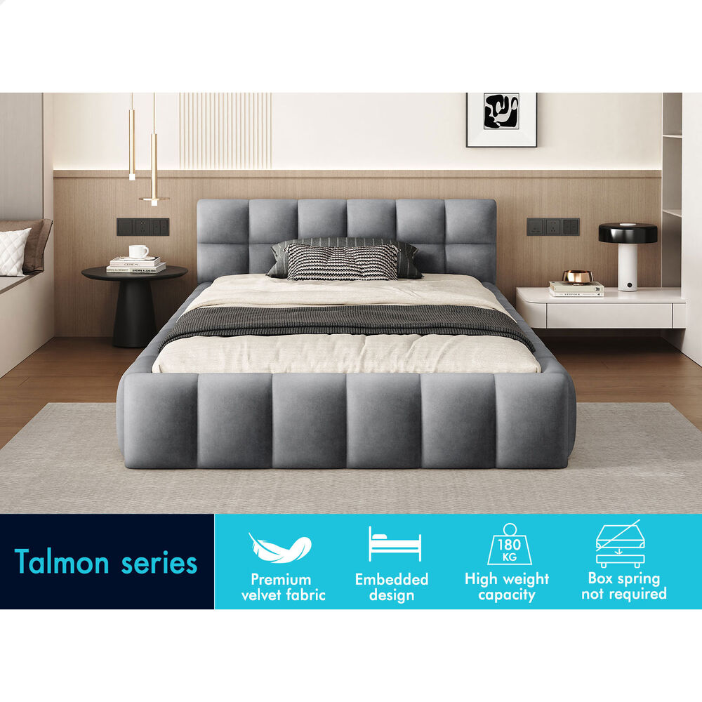 ALFORDSON Bed Frame Single Size Tufted Headboard Foundation Grey Velvet TALMON