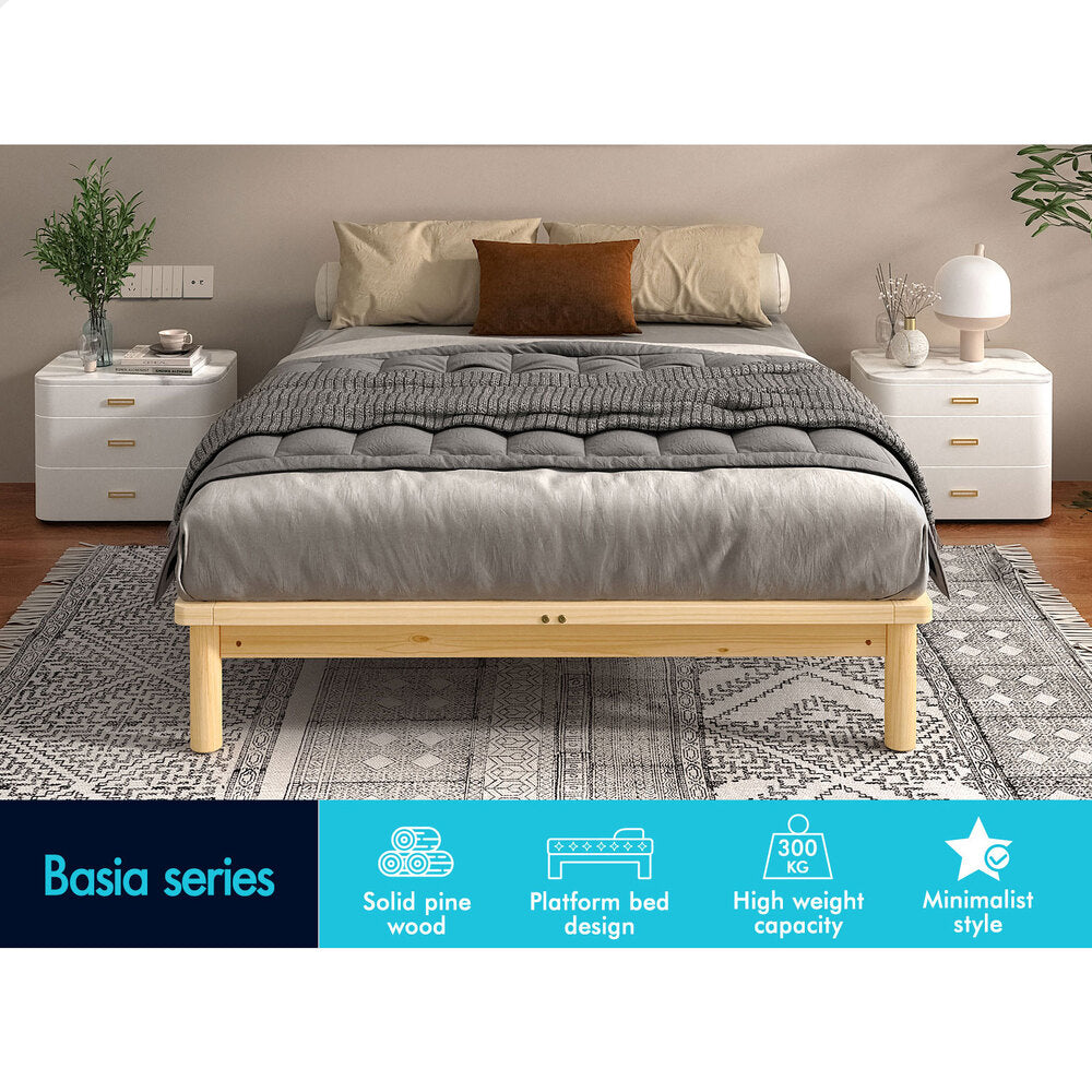 ALFORDSON Bed Frame Wooden Timber Queen Size Mattress Base Platform Basia Oak