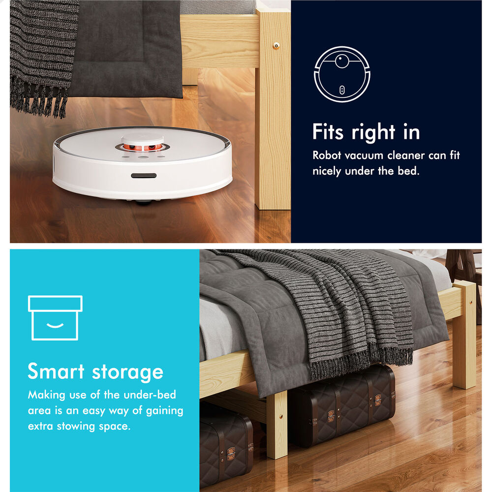 More storage place - The elevating design not only allows robot vacuum cleaner to go through under the bed, but also provides you with an additional storage space. We also have matching trundle drawers in store for sale, so you can keep clothes, bedding, linen and more within reach.