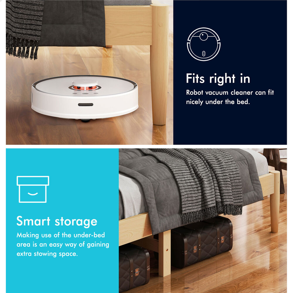 More storage place - The elevating design not only allows robot vacuum cleaner to go through under the bed, but also provides you with an additional storage space. We also have matching trundle drawers in store for sale, so you can keep clothes, bedding, linen and more within reach.