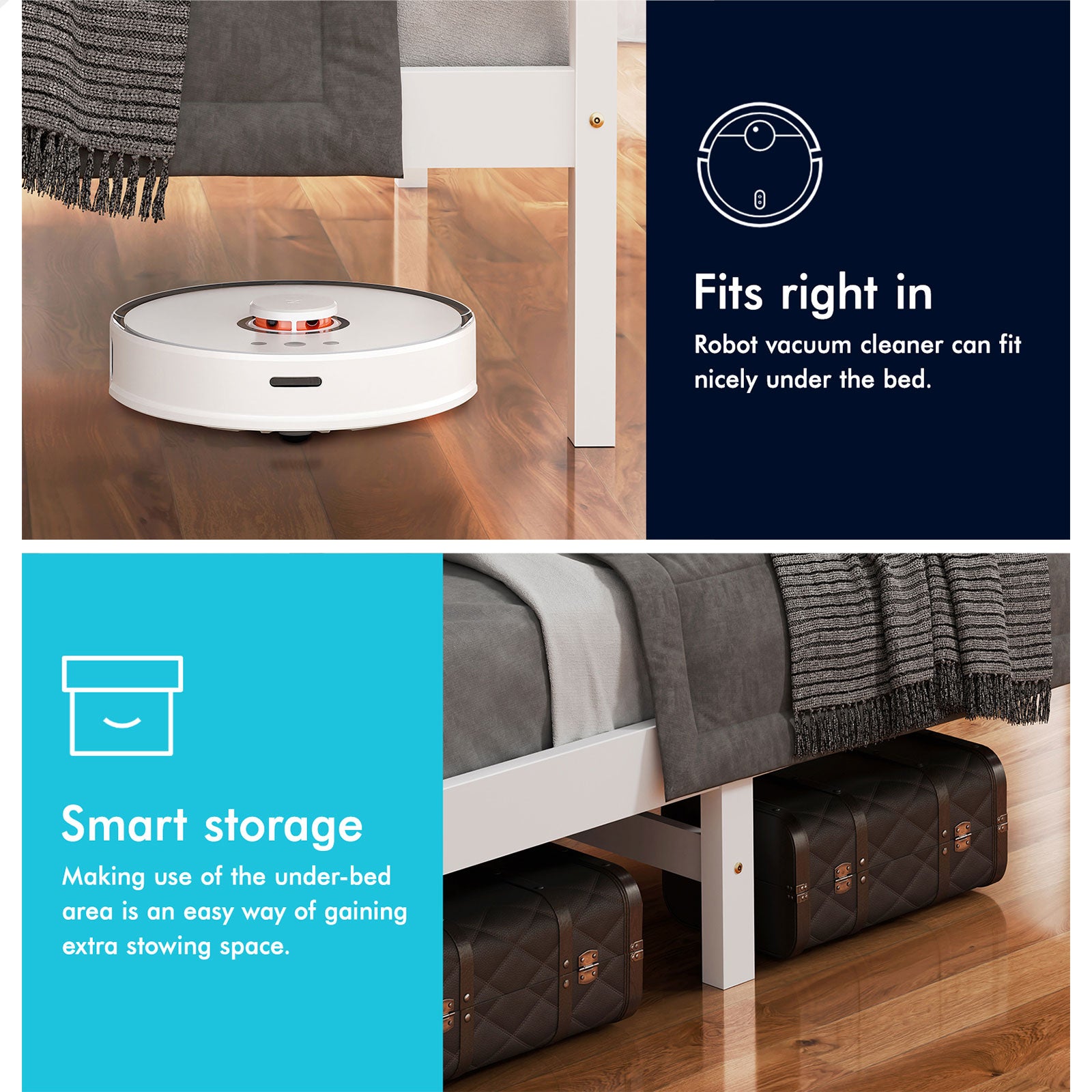 More storage place - The elevating design not only allows robot vacuum cleaner to go through under the bed, but also provides you with an additional storage space. We also have matching trundle drawers in store for sale, so you can keep clothes, bedding, linen and more within reach.