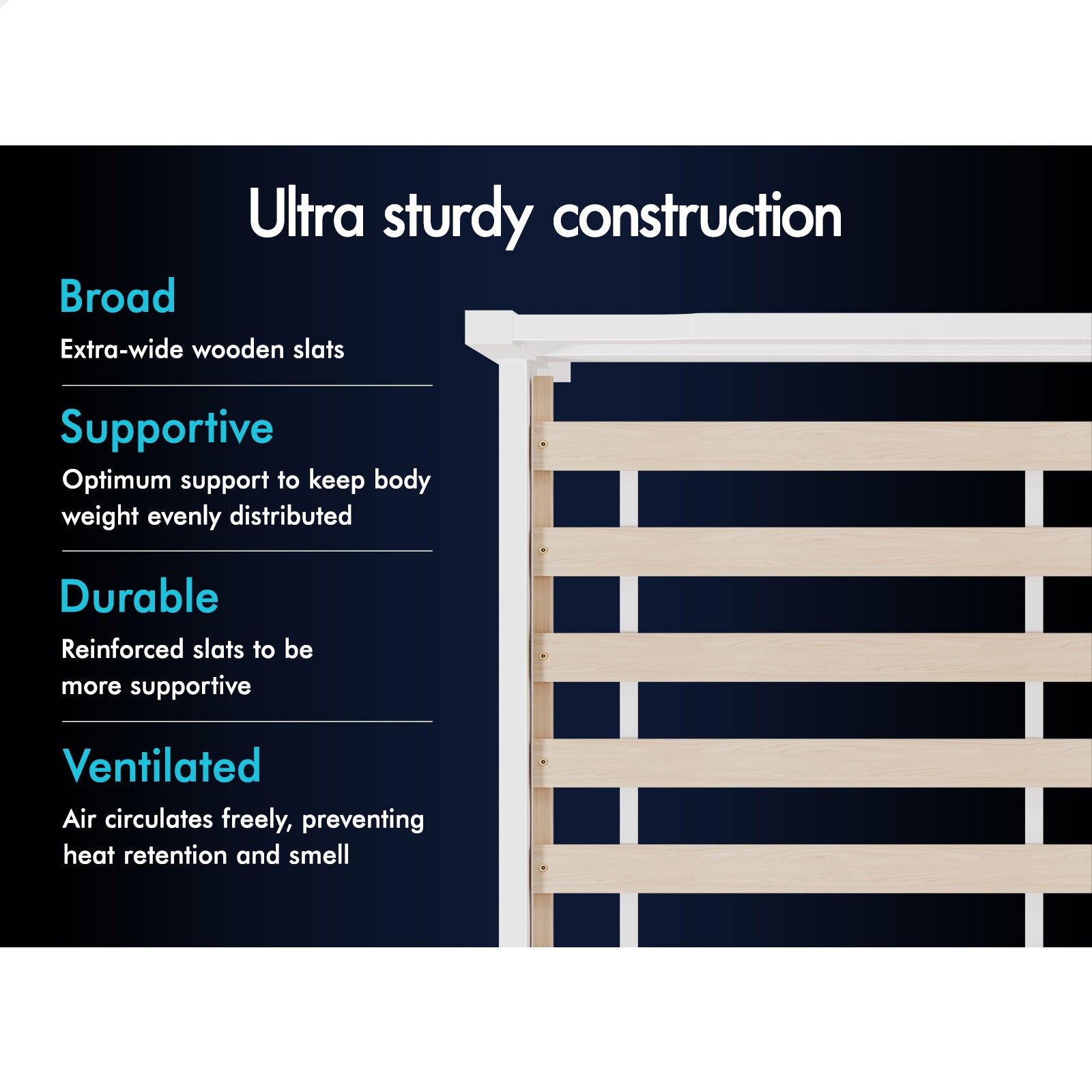 ALFORDSON Bed Frame Wooden King Single Mattress Base Platform Timber White DUBEM