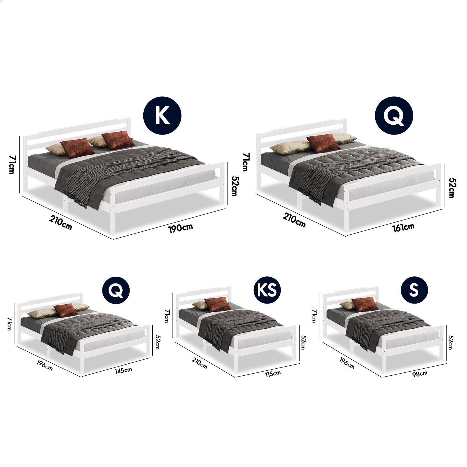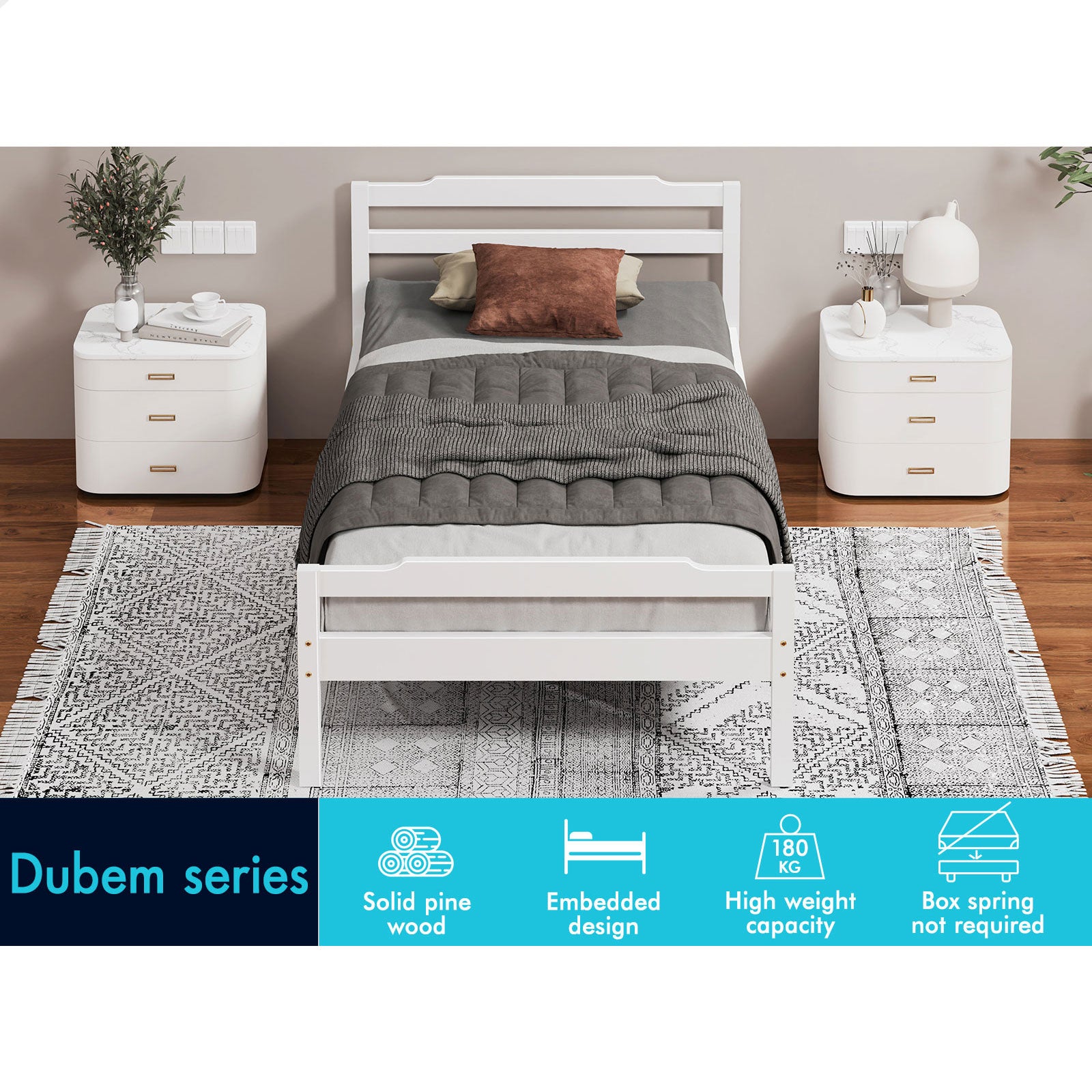 ALFORDSON Bed Frame Wooden Single Size Mattress Base Platform Timber White DUBEM