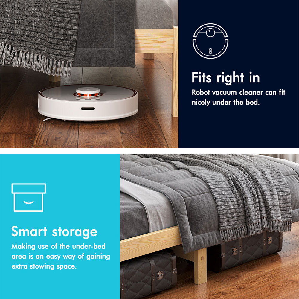 More storage place - The elevating design not only allows robot vacuum cleaner to go through under the bed, but also provides you with an additional storage space. We also have matching trundle drawers in store for sale, so you can keep clothes, bedding, linen and more within reach.
