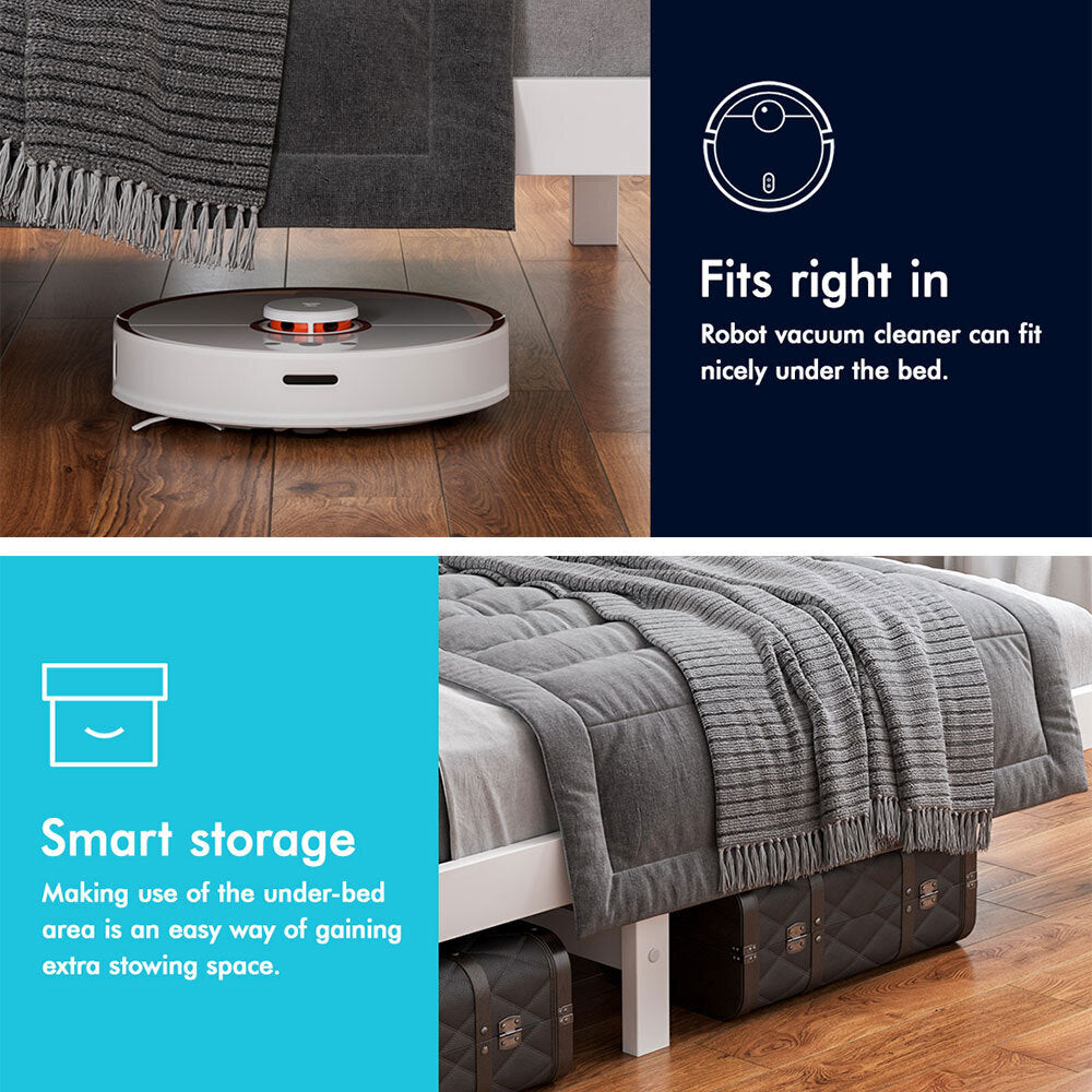 More storage place - The elevating design not only allows robot vacuum cleaner to go through under the bed, but also provides you with an additional storage space. We also have matching trundle drawers in store for sale, so you can keep clothes, bedding, linen and more within reach.