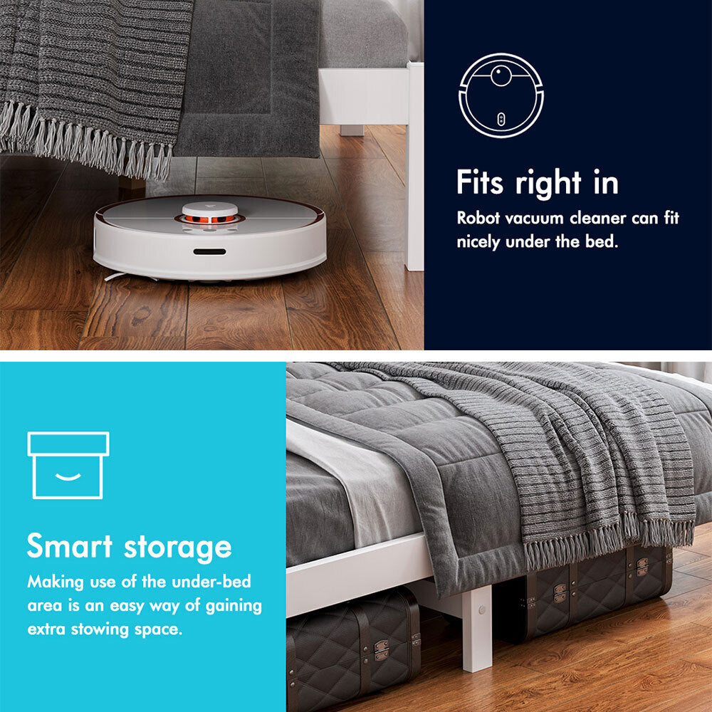 More storage place - The elevating design not only allows robot vacuum cleaner to go through under the bed, but also provides you with an additional storage space. We also have matching trundle drawers in store for sale, so you can keep clothes, bedding, linen and more within reach.