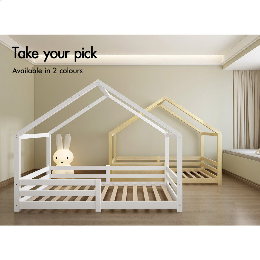 Safety comes first - This house bed is lower enough for your little kids. You do not need to worry about their safety when sleeping in this bed. With the detachable guard rail, you can have it installed on the left or right, or even take it off when no longer needed. The bed will suit kids in any ages.