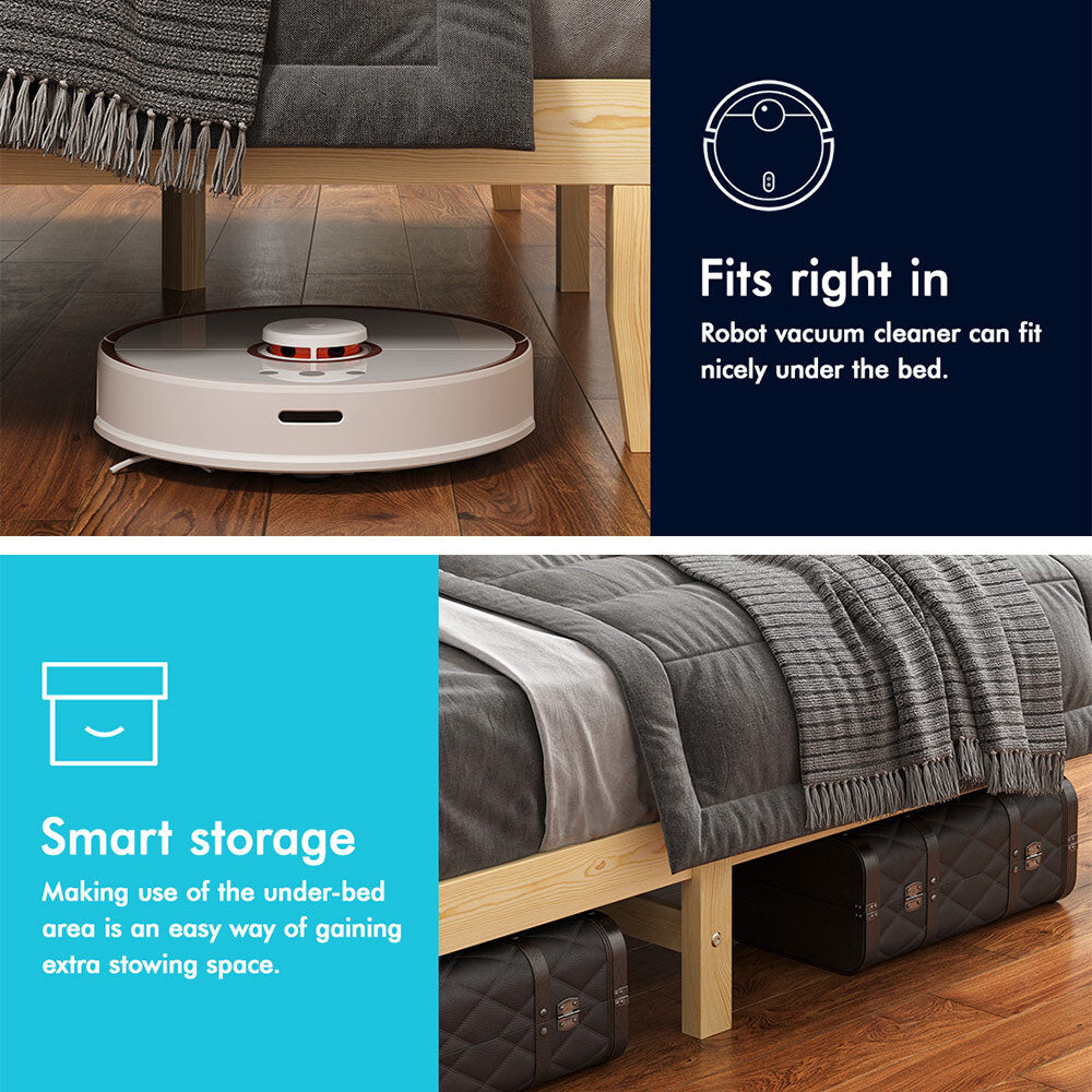 More storage place - The elevating design not only allows robot vacuum cleaner to go through under the bed, but also provides you with an additional storage space. We also have matching trundle drawers in store for sale, so you can keep clothes, bedding, linen and more within reach.