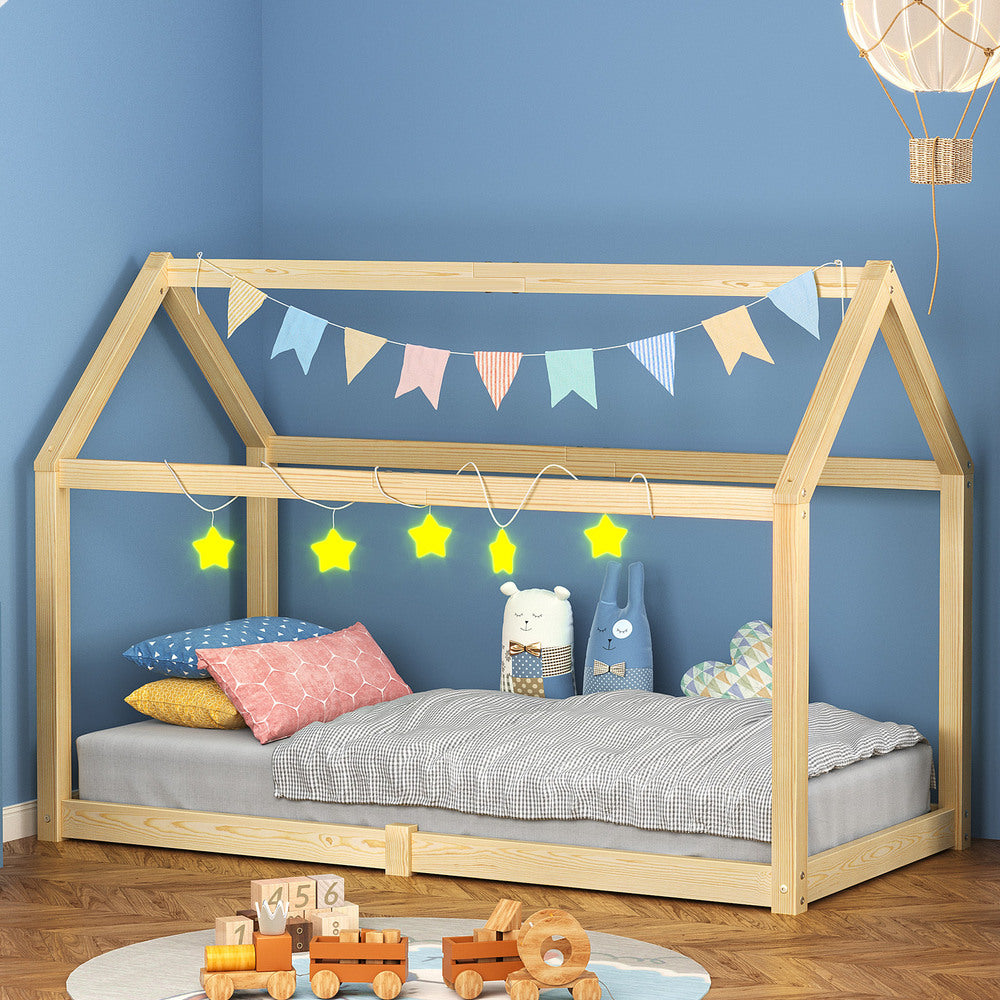 House-shaped design - This house-shaped bed is great for imaginative play during the day. The roof, inspired by playhouse designs, offers a fun and eye-catching coziness that will enhance your little one's imagination while also providing a safe place for play.