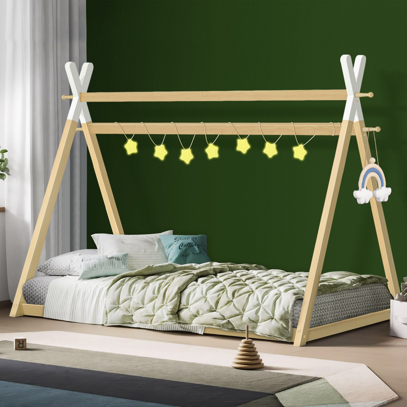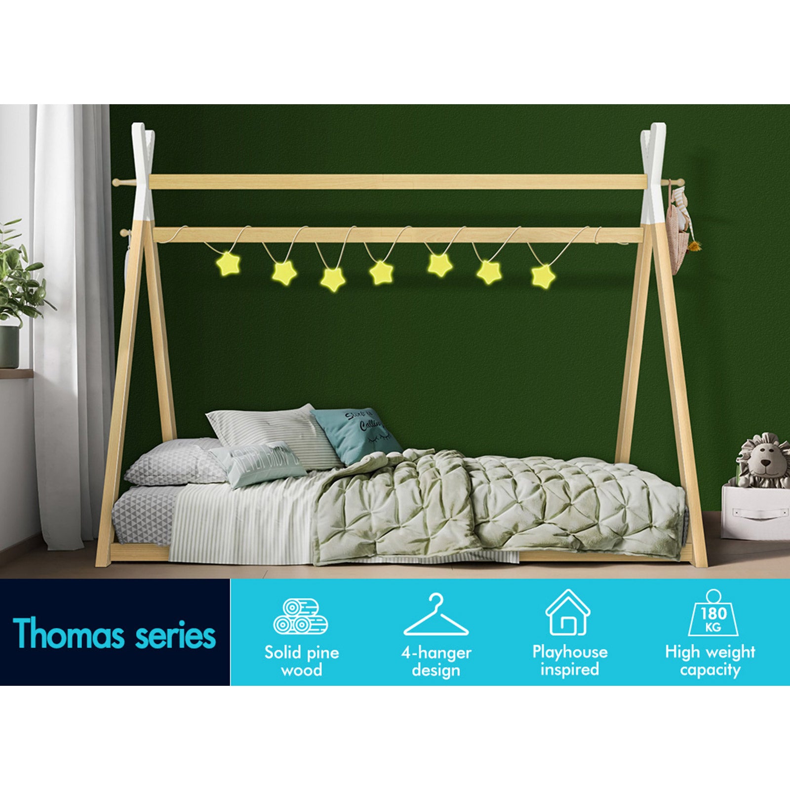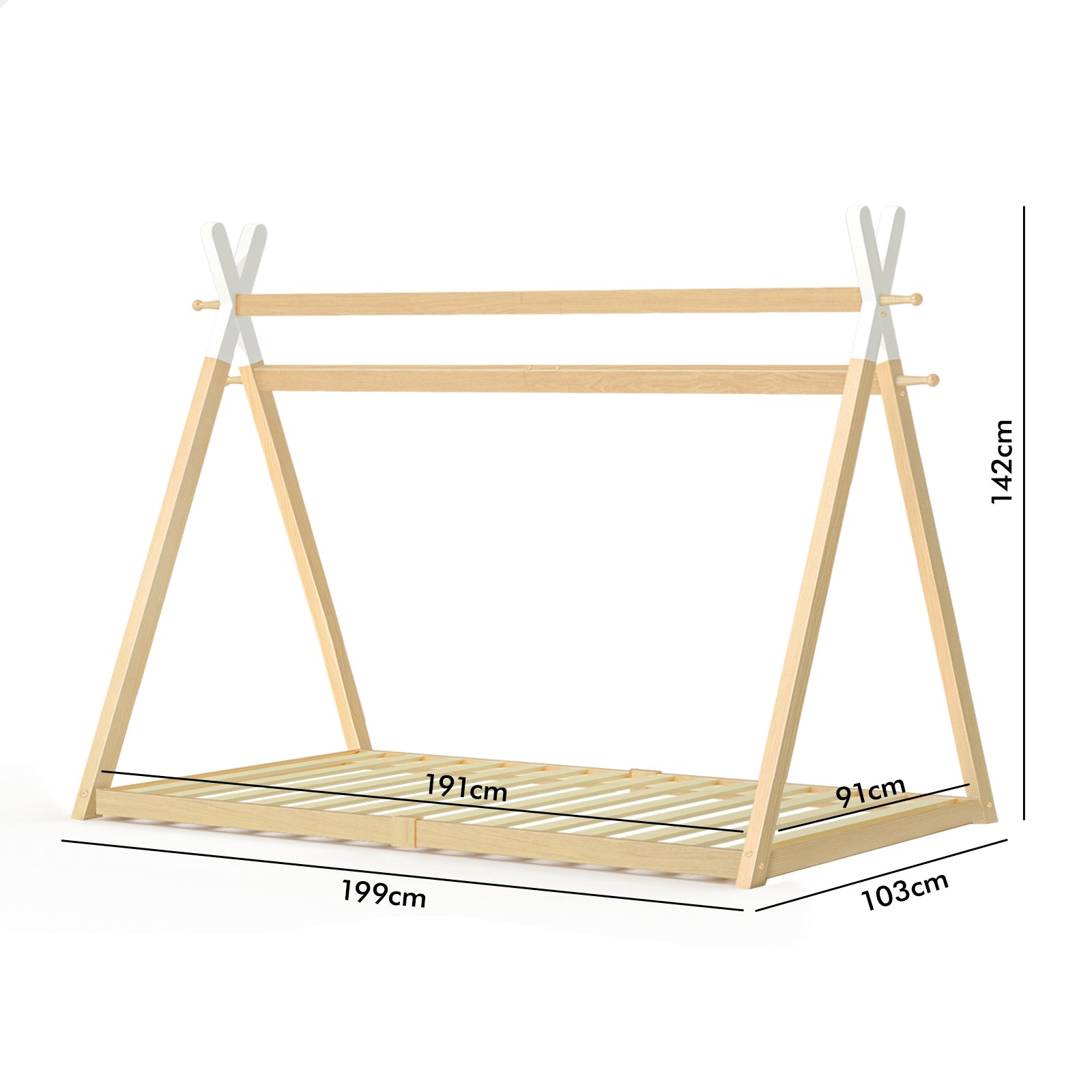 ALFORDSON Bed Frame Wooden Single Timber Teepee House Base Platform Oak Thomas
