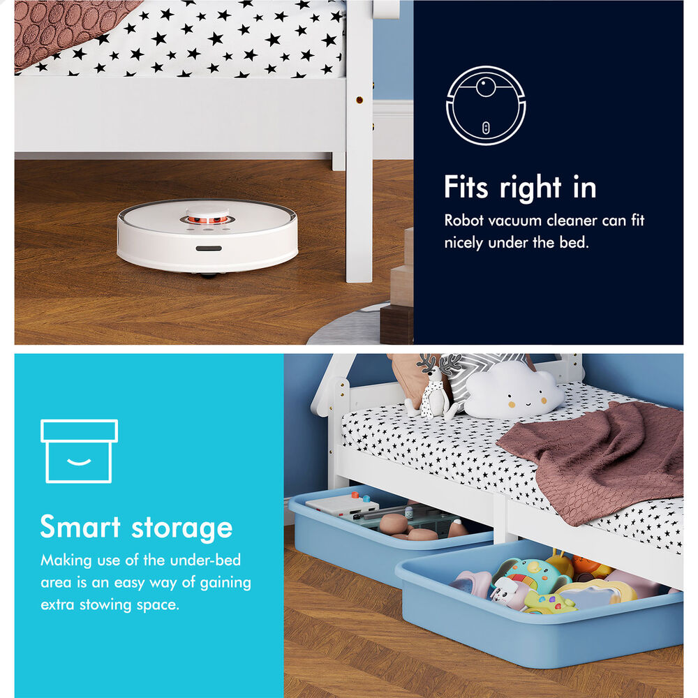 More storage place - The elevating design not only allows robot vacuum cleaner to go through under the bed, but also provides you with an additional storage space. We also have matching trundle drawers in store for sale, so you can keep clothes, bedding, toys and more within reach.
