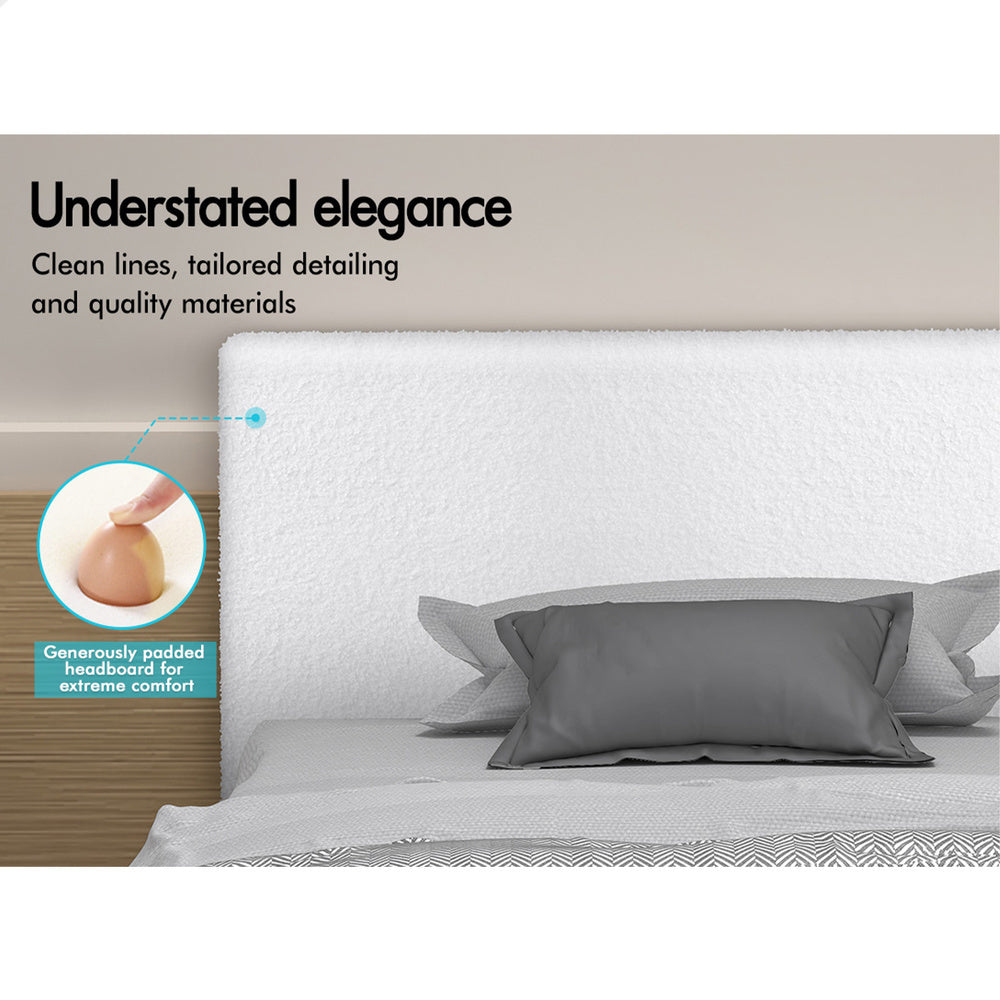 ALFORDSON Bed Frame King Size Gas Lift Storage Base White Boucle TRICIA