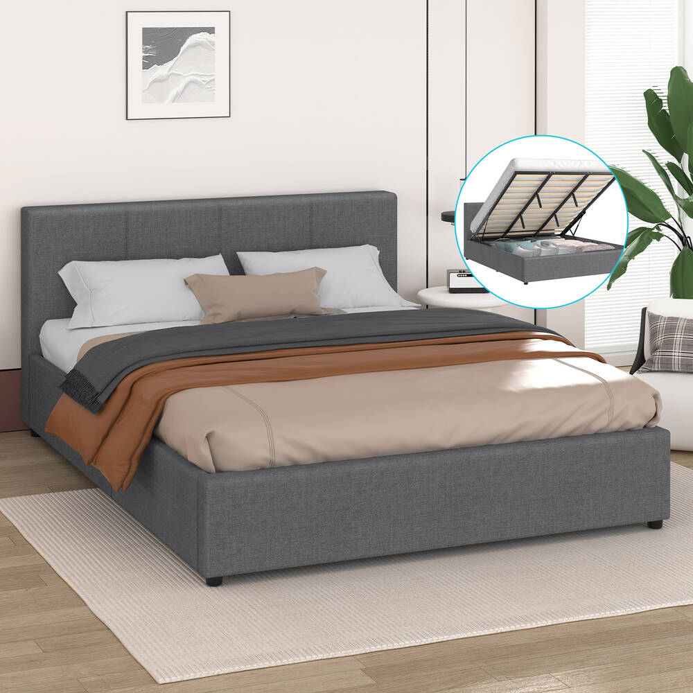 ALFORDSON Bed Frame King Size Gas Lift Storage Base Grey Fabric TRICIA