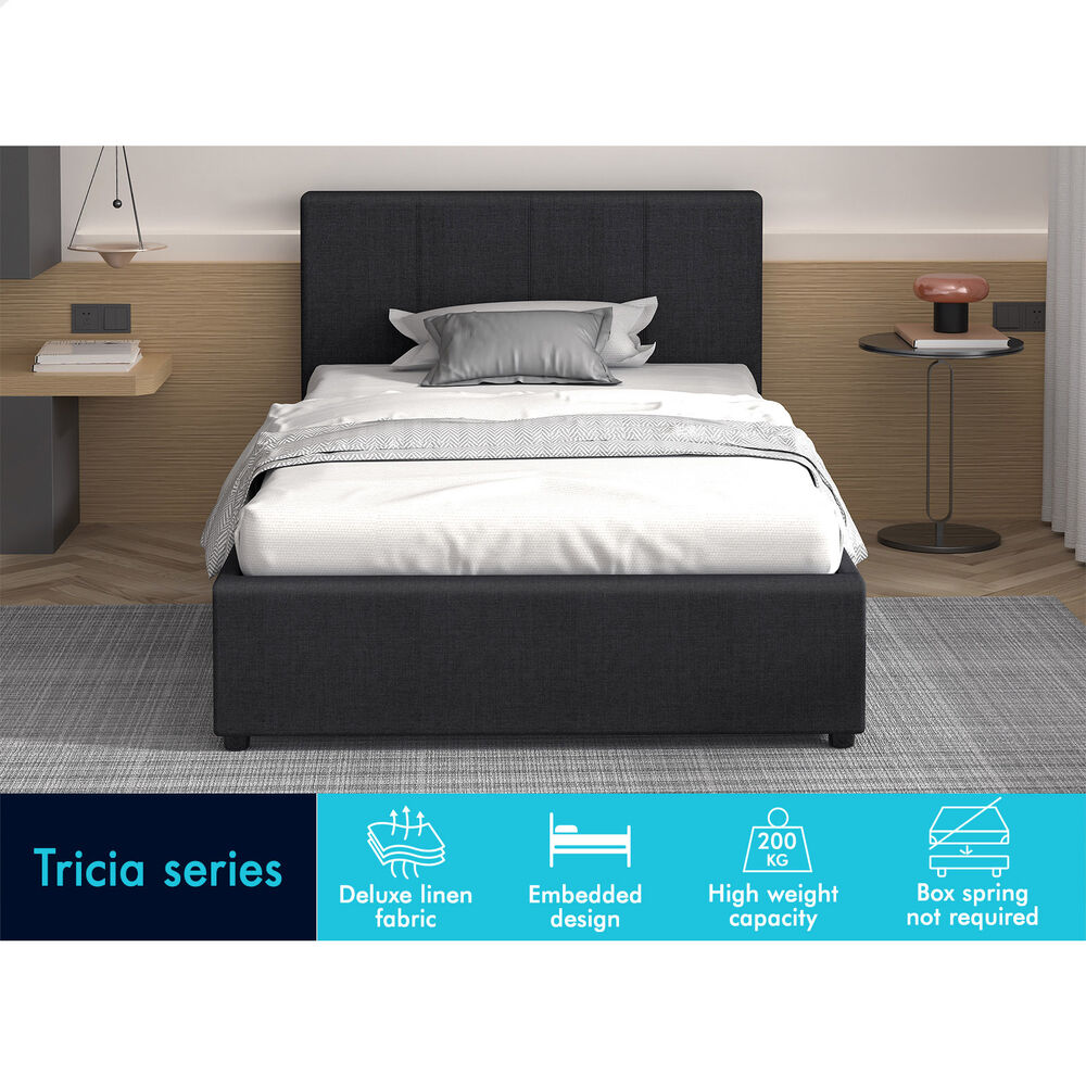 ALFORDSON Bed Frame King Single Gas Lift Storage Base Fabric Charcoal TRICIA