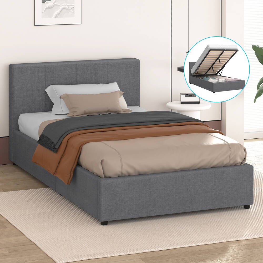 ALFORDSON Bed Frame King Single Gas Lift Storage Base Grey Fabric TRICIA