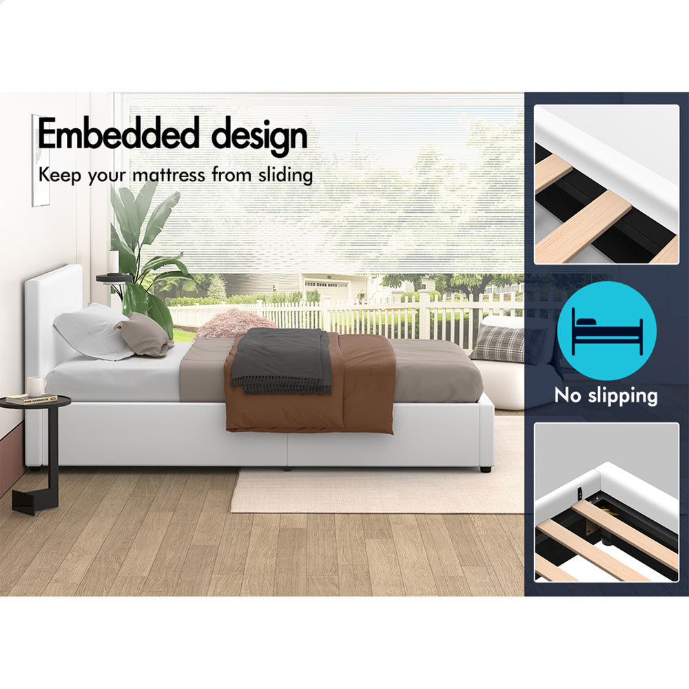 ALFORDSON Bed Frame King Single Gas Lift Storage Base White Leather TRICIA