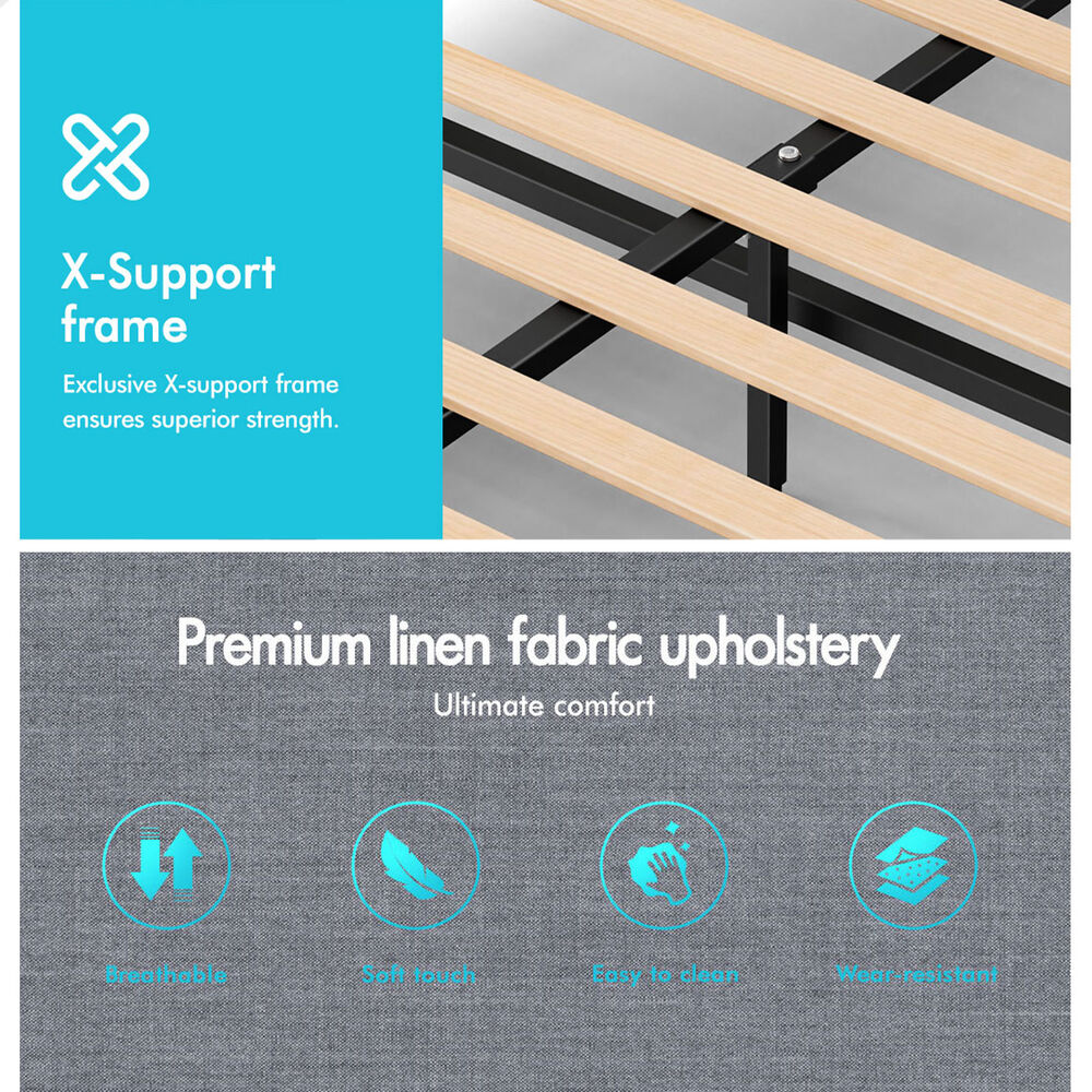 ALFORDSON Bed Frame Double Gas Lift Storage Adjustable Headboard Grey LURIA