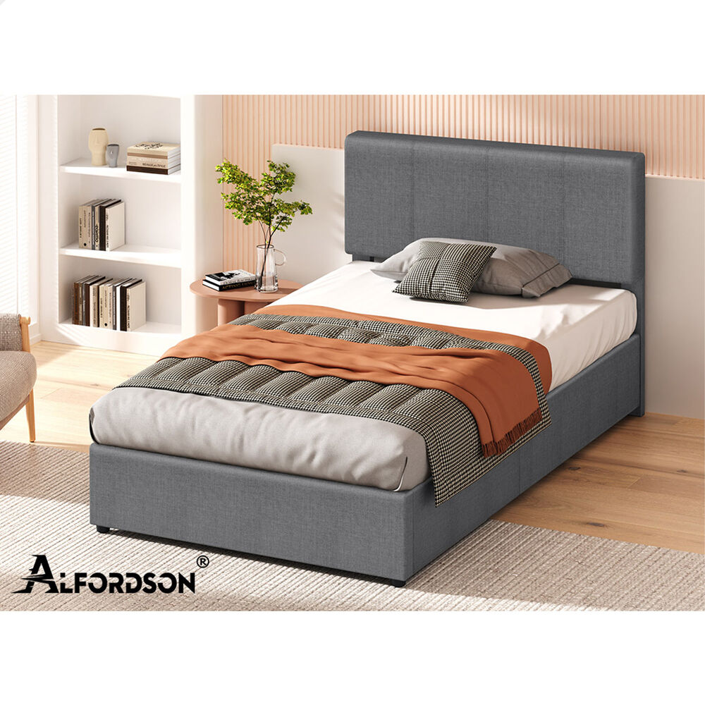 ALFORDSON Bed Frame King Single Gas Lift Storage Adjustable Headboard Grey LURIA