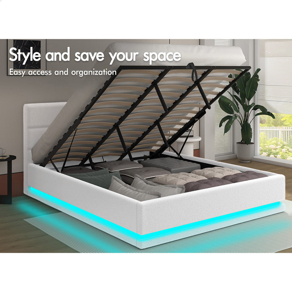 ALFORDSON Bed Frame King Size Platform RGB LED Gas Lift Base Storage Boucle