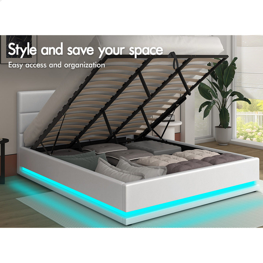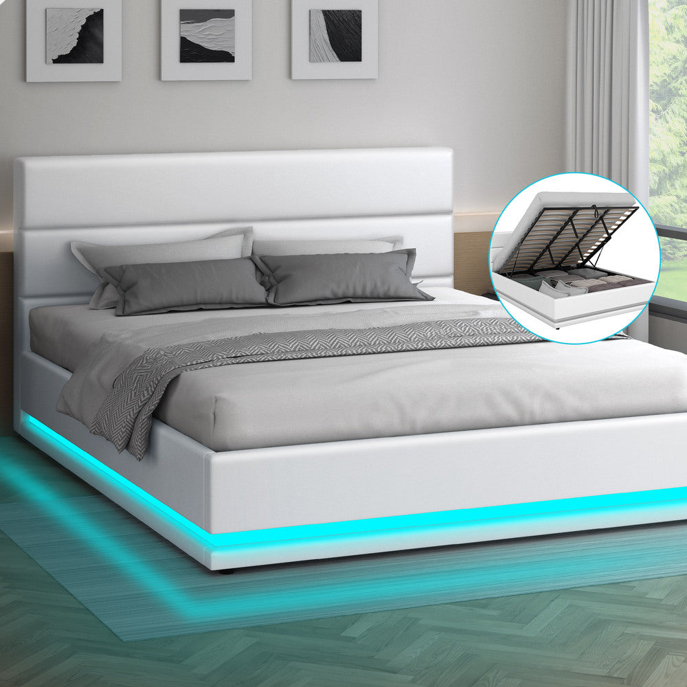ALFORDSON Bed Frame King Size Platform RGB LED Gas Lift Base Storage White