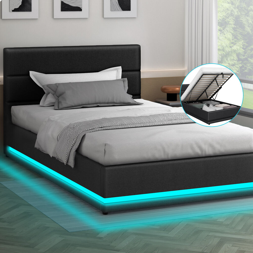 ALFORDSON Bed Frame King Single Platform RGB LED Gas Lift Base Storage Charcoal