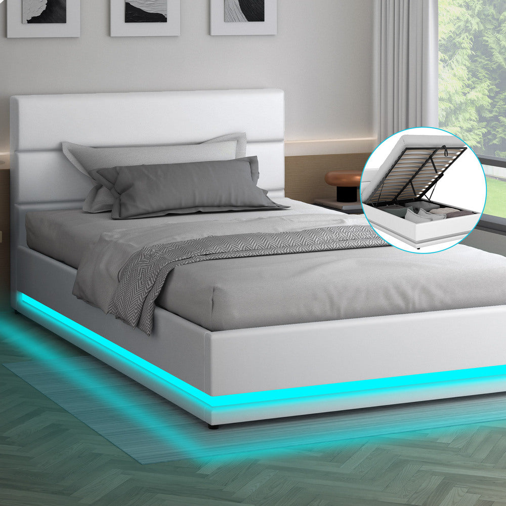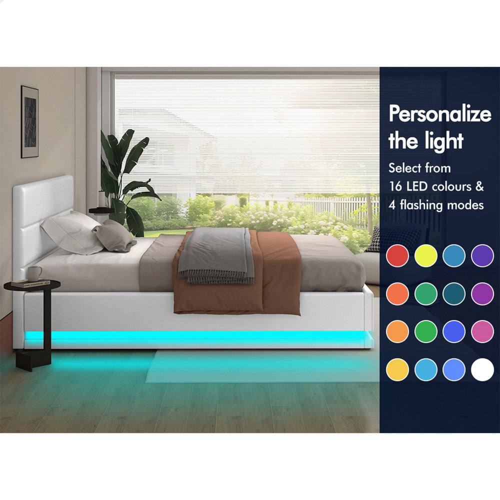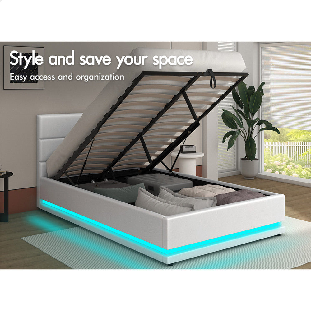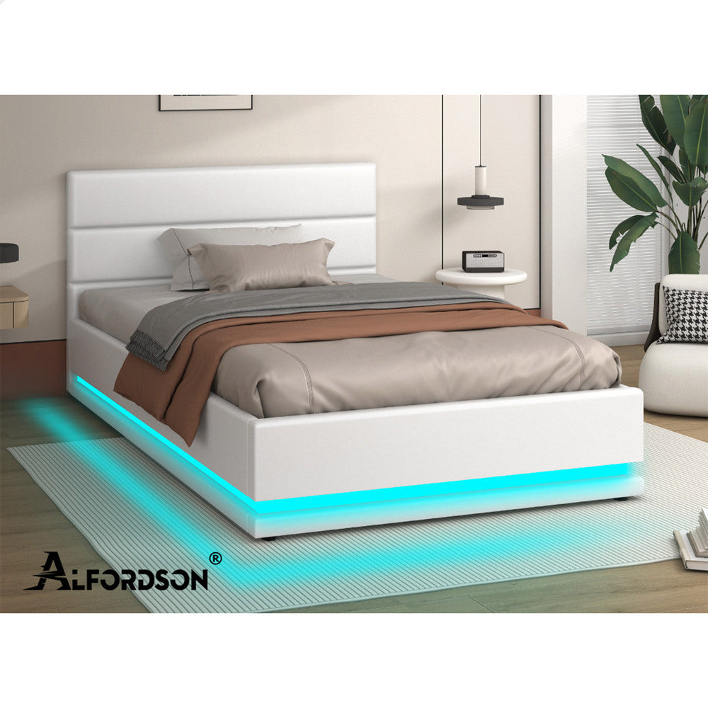 ALFORDSON Bed Frame King Single Platform RGB LED Gas Lift Base Storage White