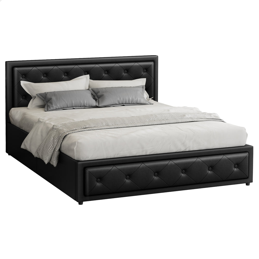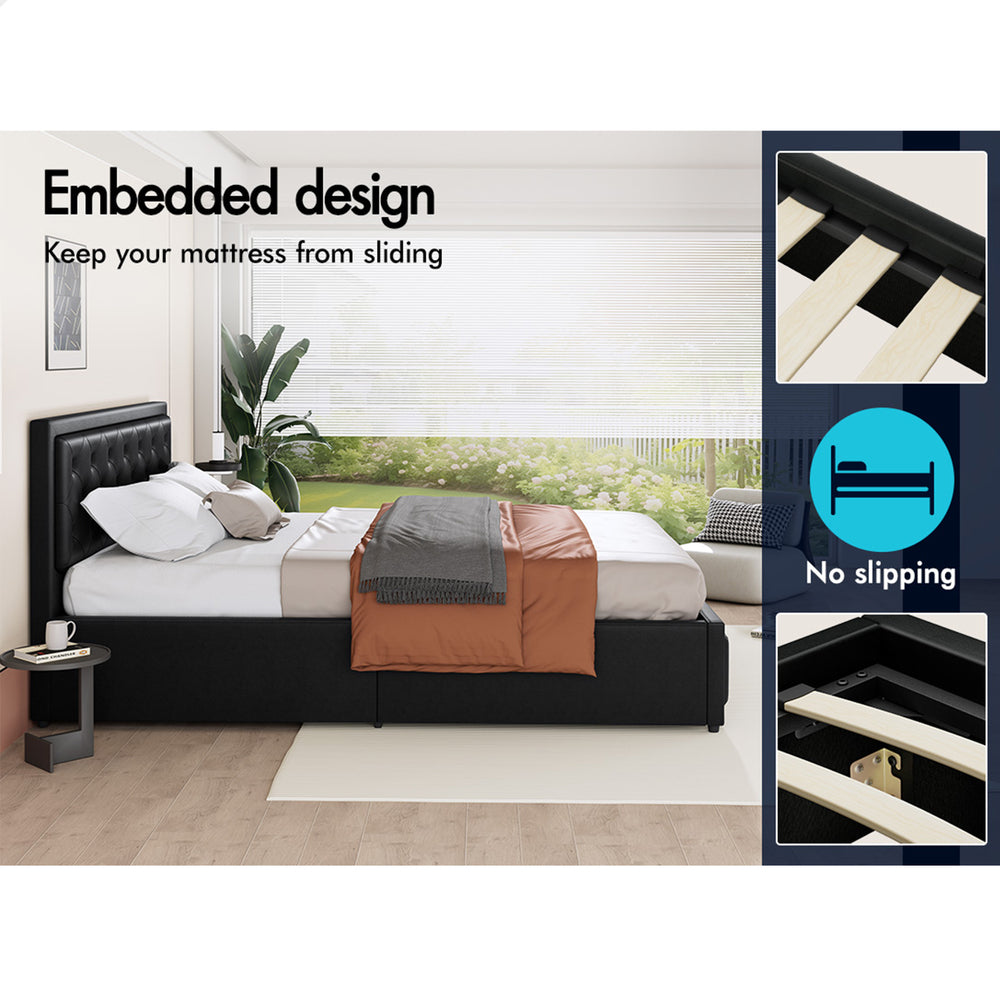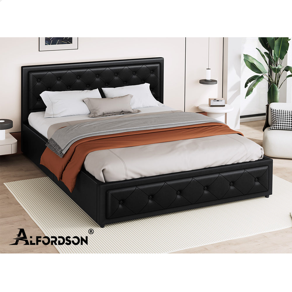 ALFORDSON Bed Frame Double Size Gas Lift Storage Mattress Base Leather Black