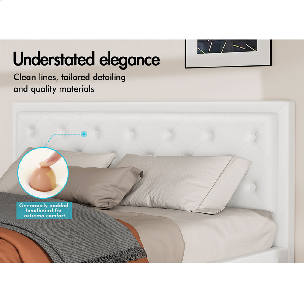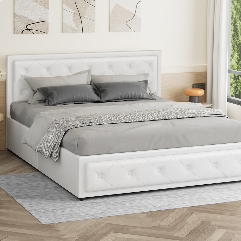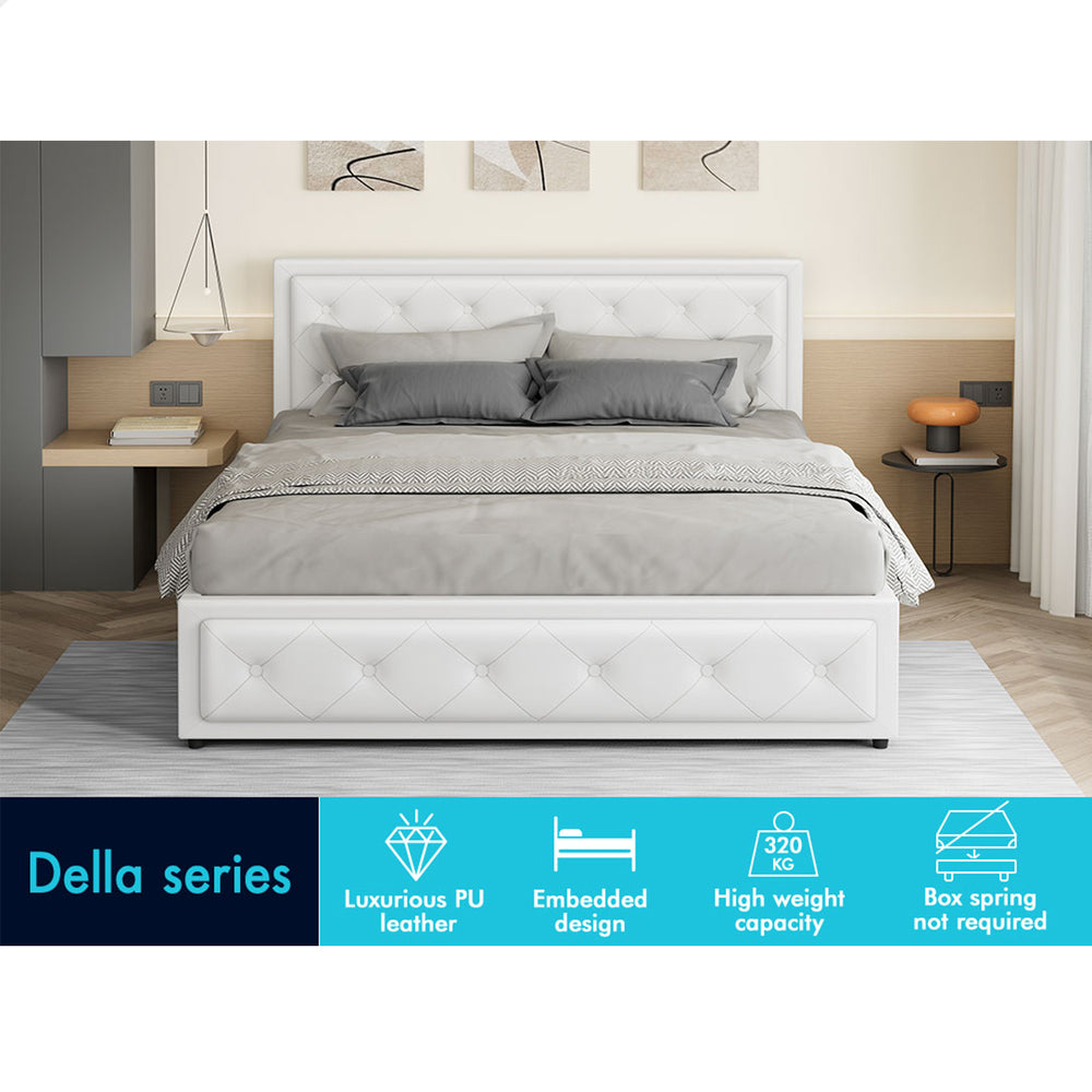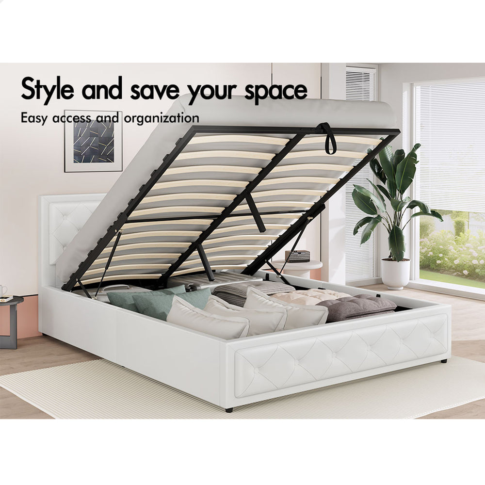 ALFORDSON Bed Frame Double Size Gas Lift Storage Mattress Base Leather White