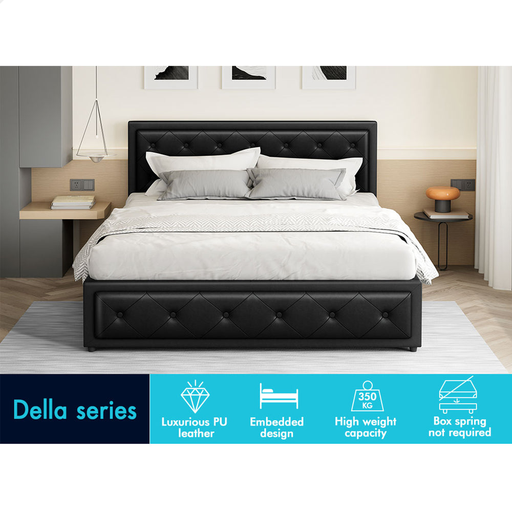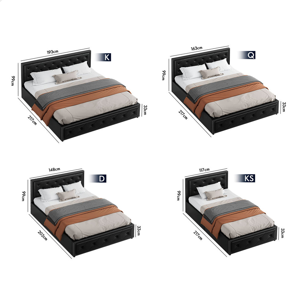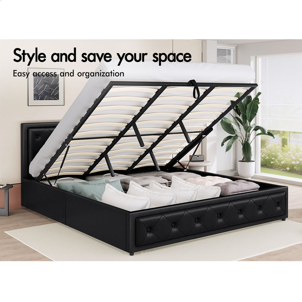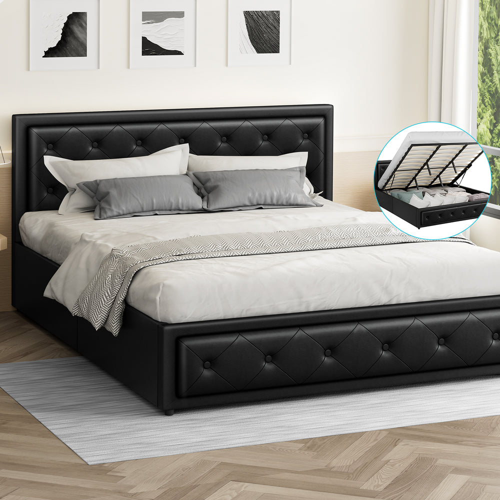 ALFORDSON Bed Frame King Size Gas Lift Storage Mattress Base Leather Black