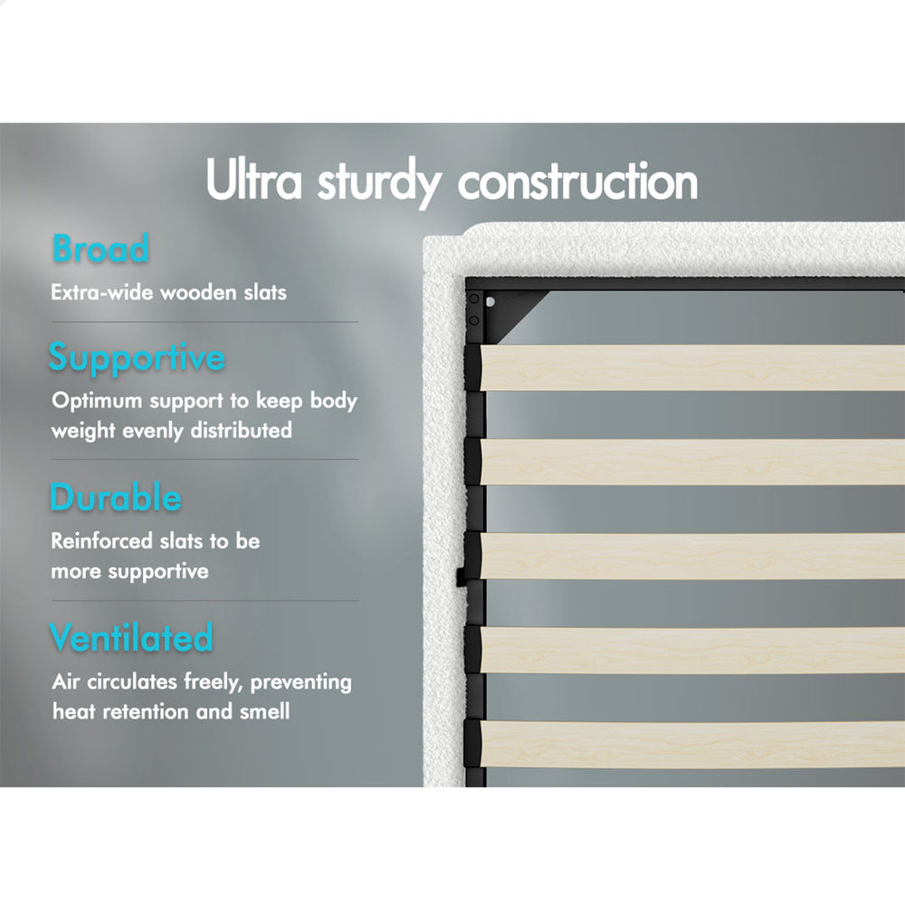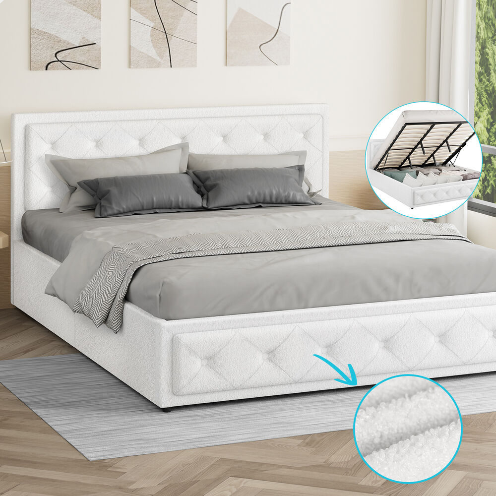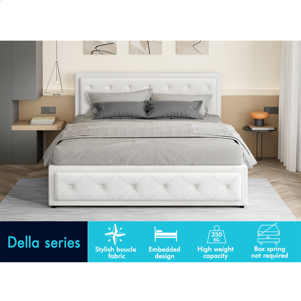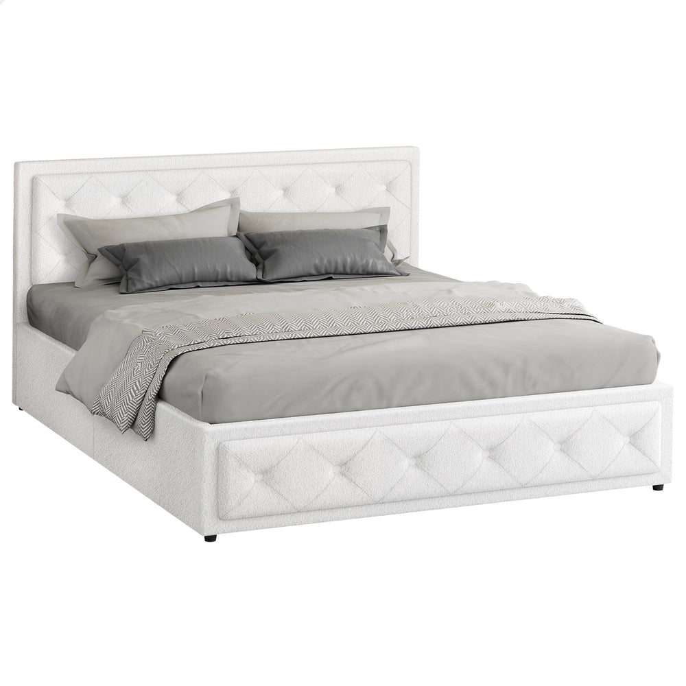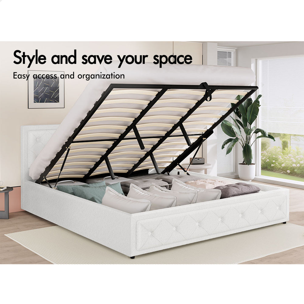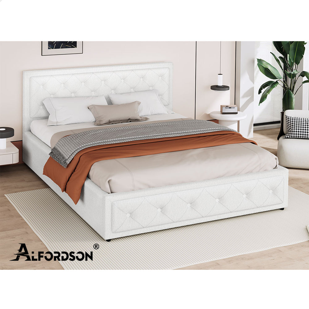 ALFORDSON Bed Frame King Size Gas Lift Storage Base Boucle Fabric White
