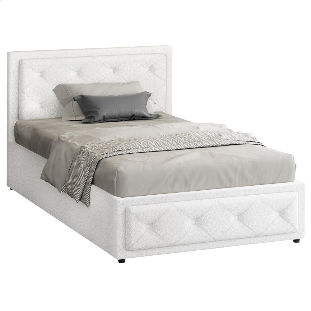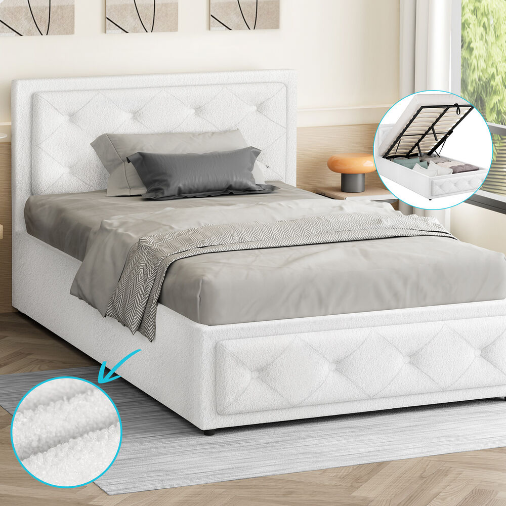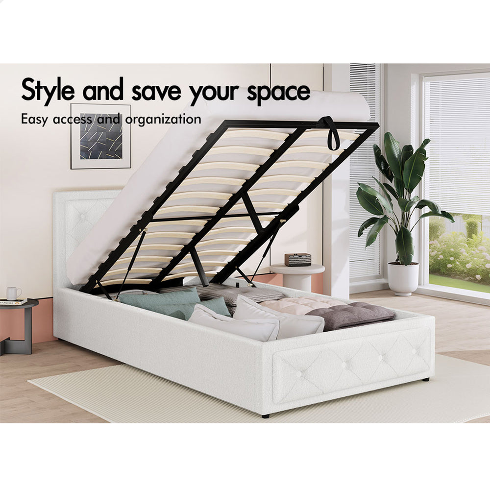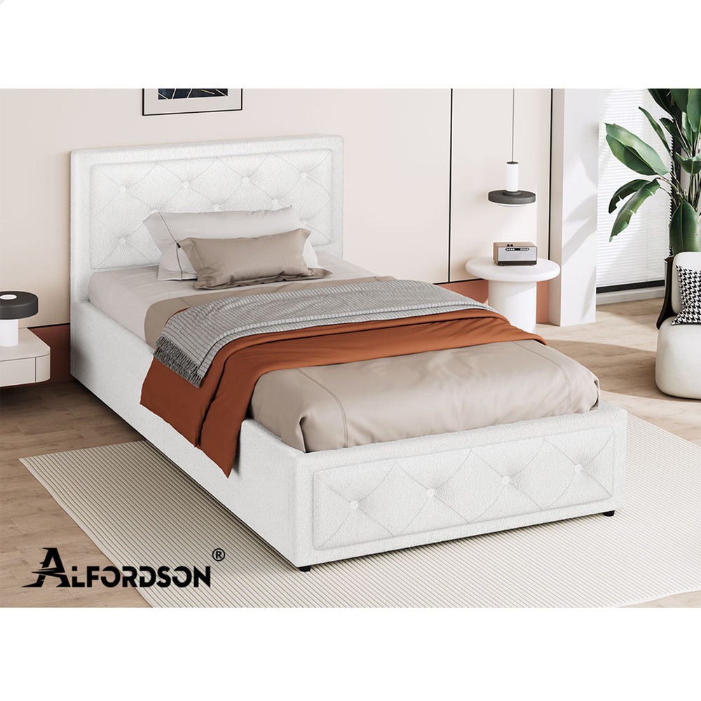 ALFORDSON Bed Frame King Single Gas Lift Storage Base Boucle Fabric White