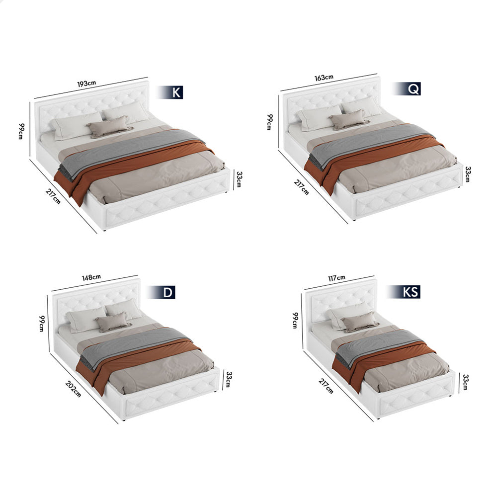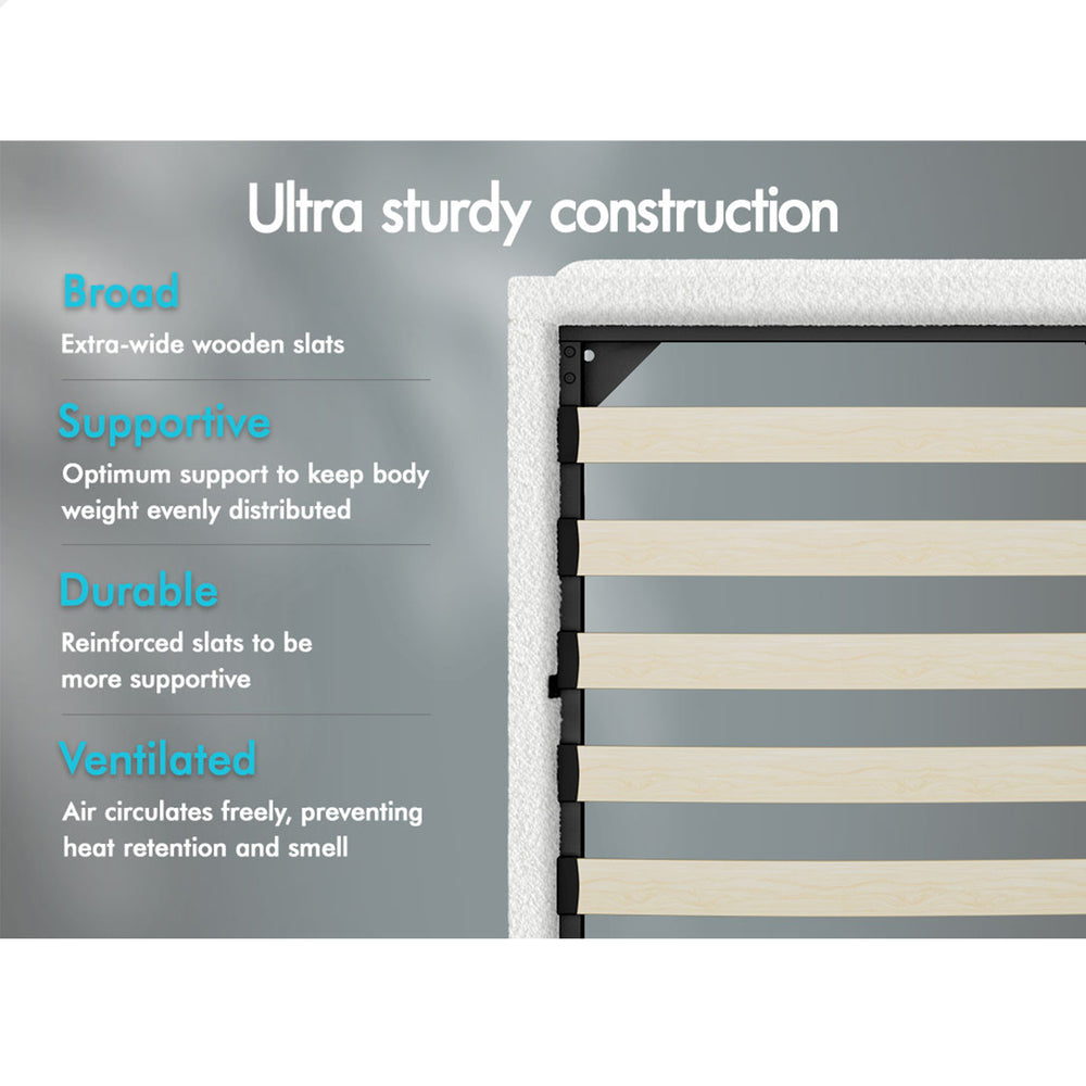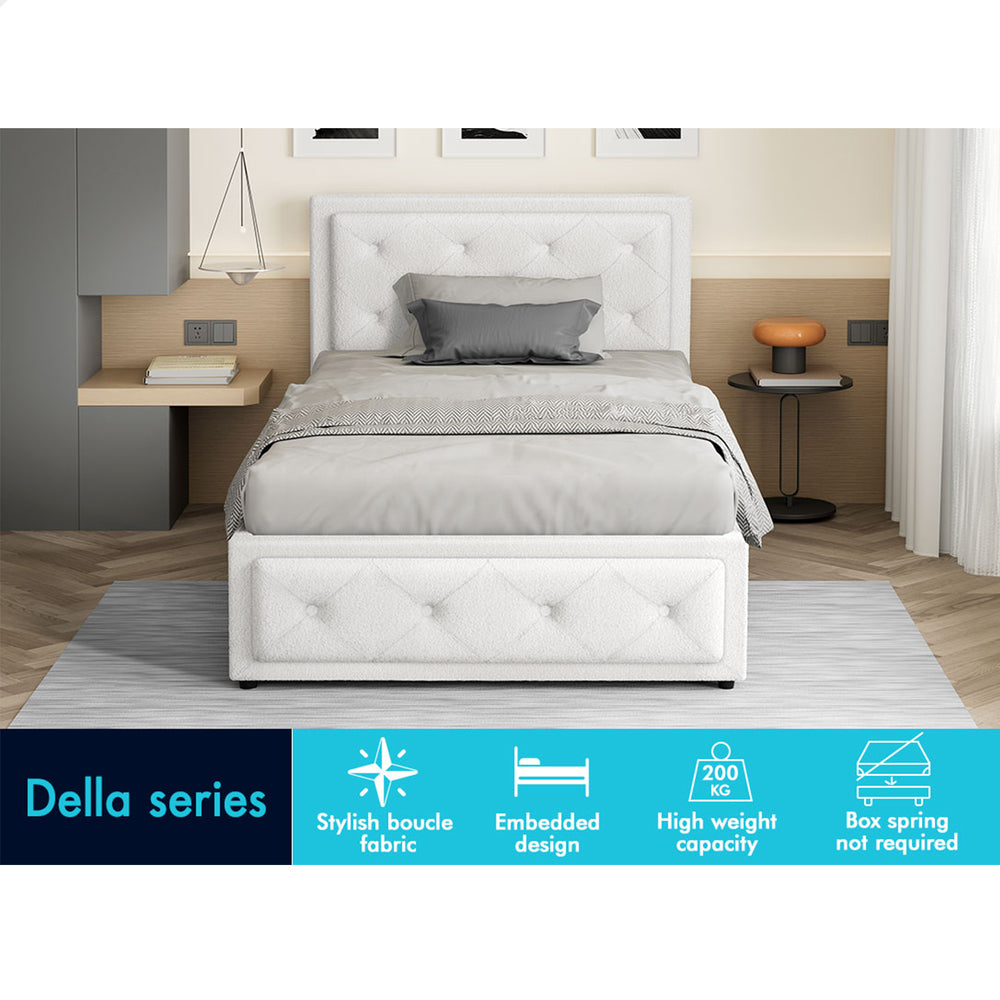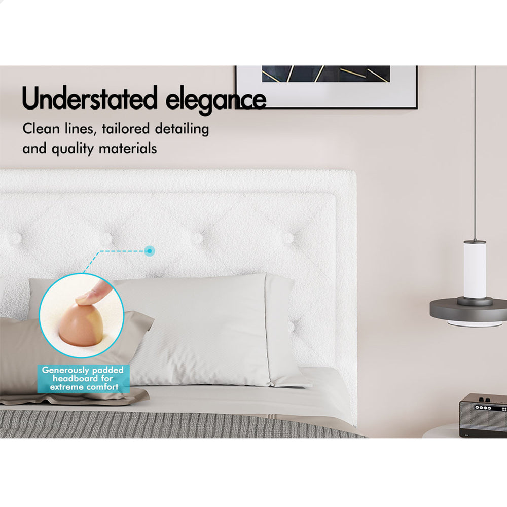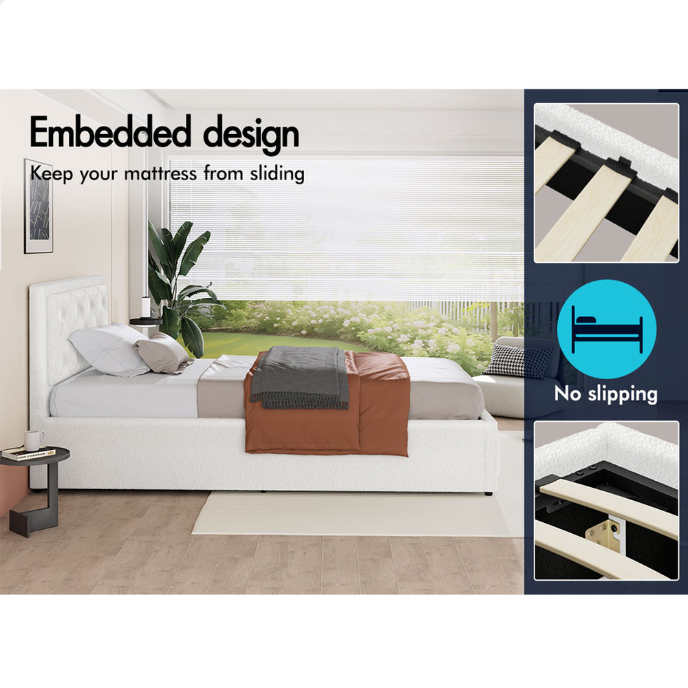 ALFORDSON Bed Frame King Single Gas Lift Storage Base Boucle Fabric White