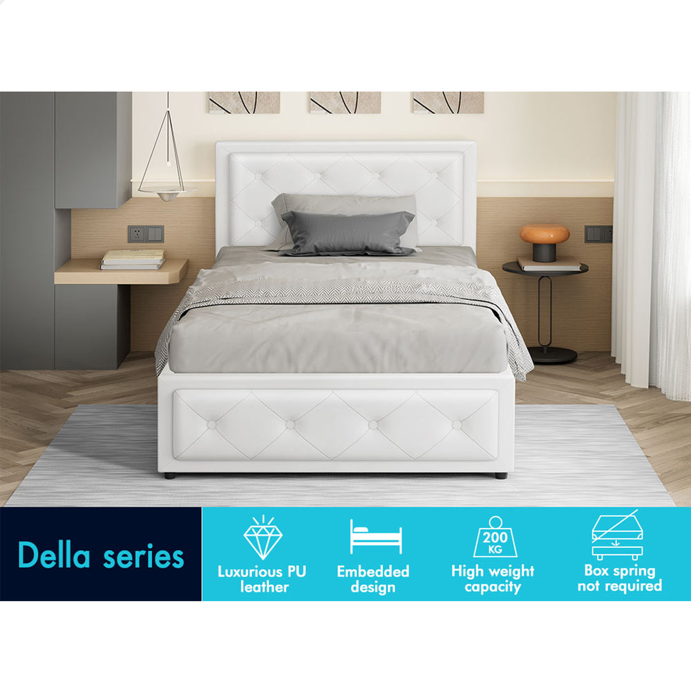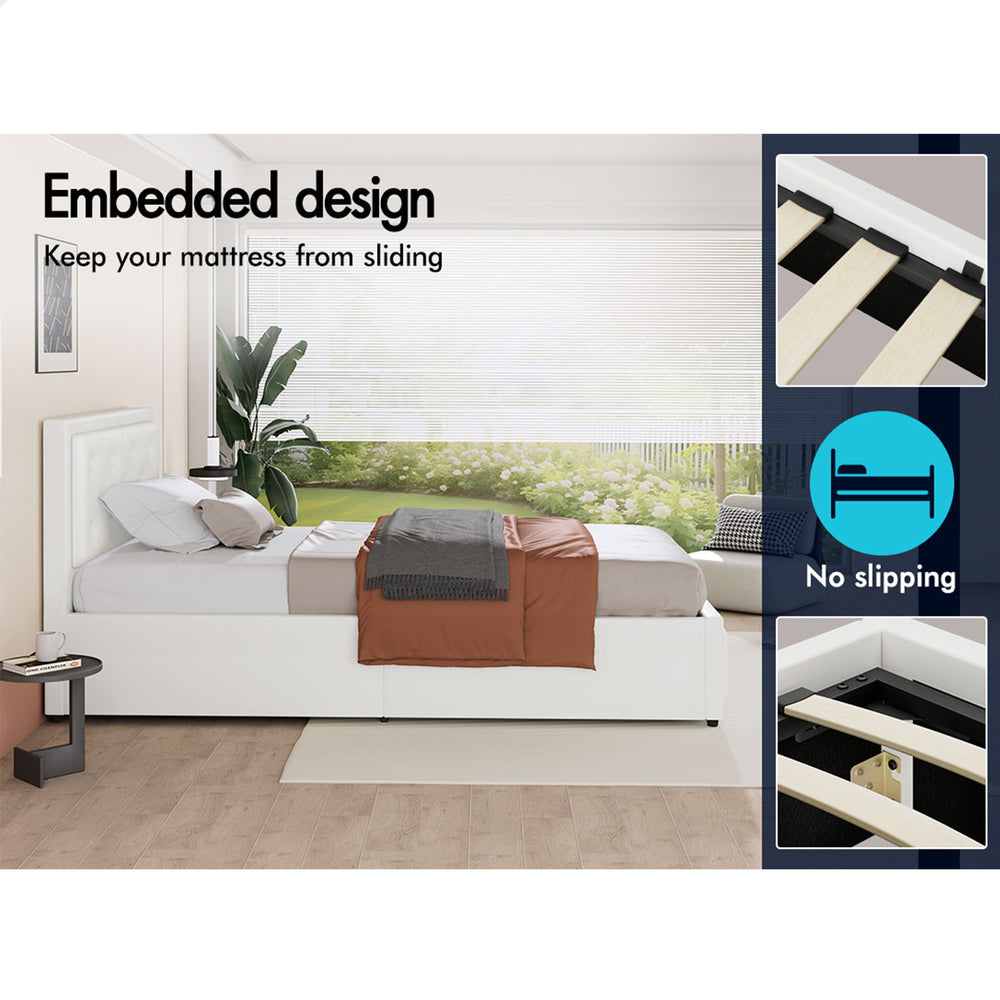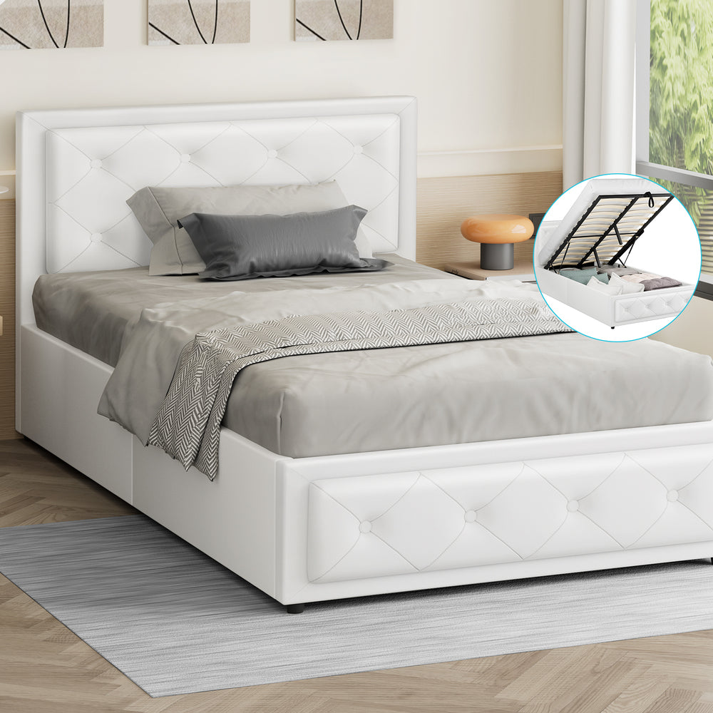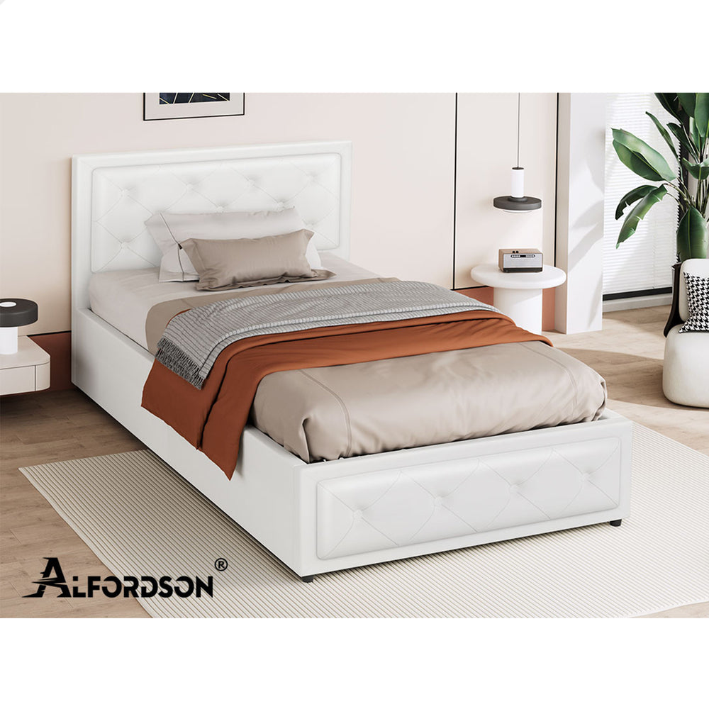 ALFORDSON Bed Frame King Single Gas Lift Storage Mattress Base Leather White
