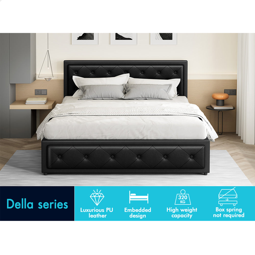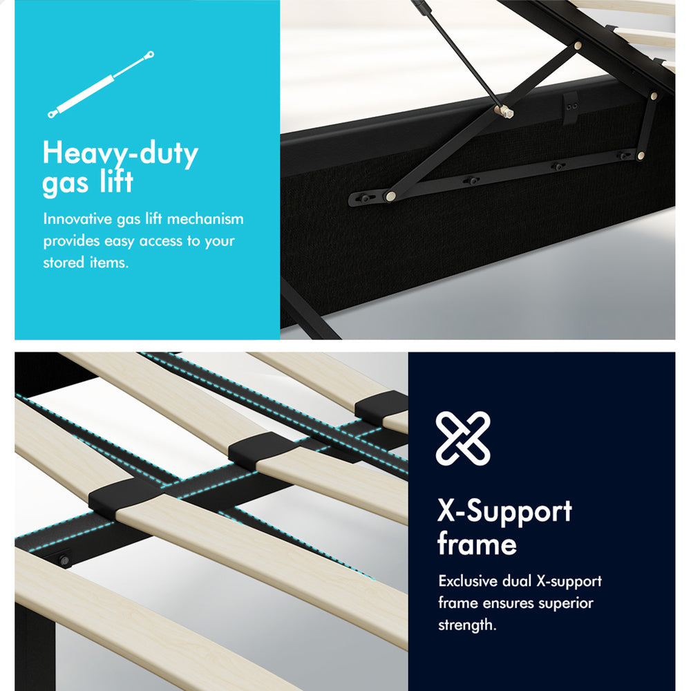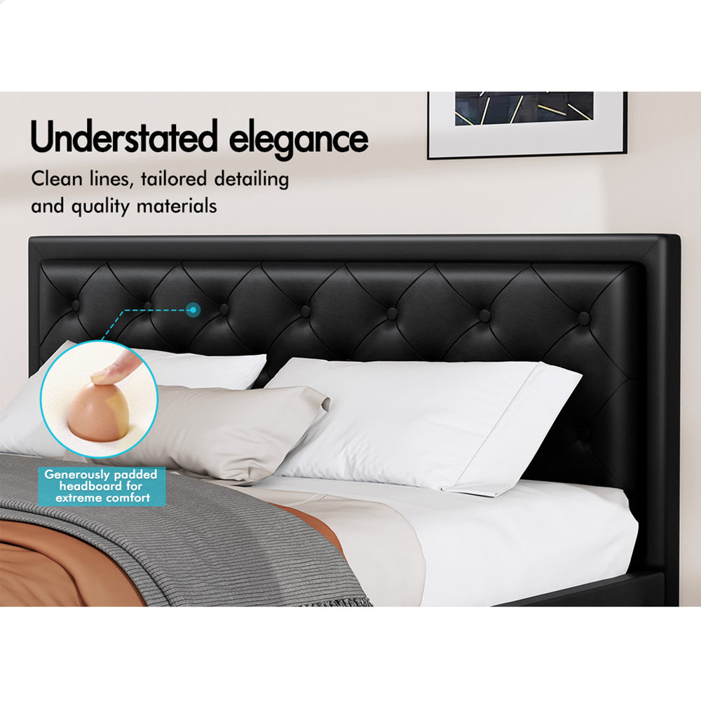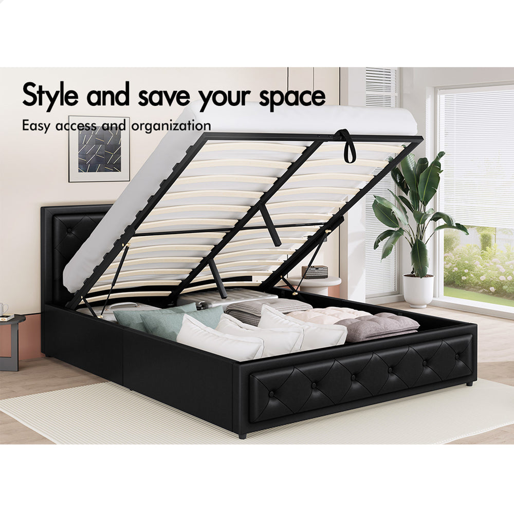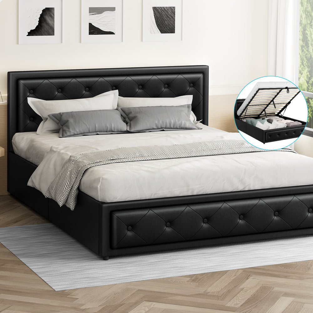 ALFORDSON Bed Frame Queen Size Gas Lift Storage Mattress Base Leather Black