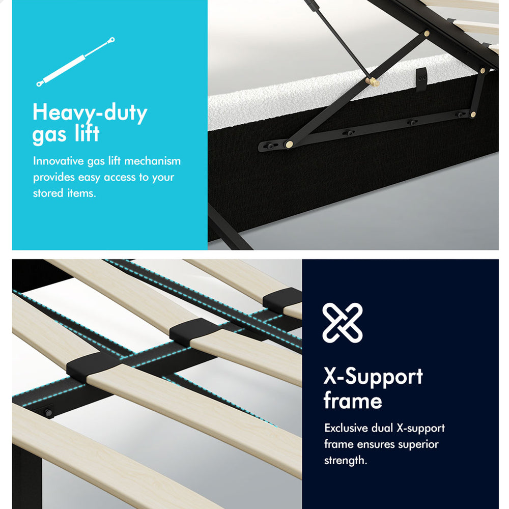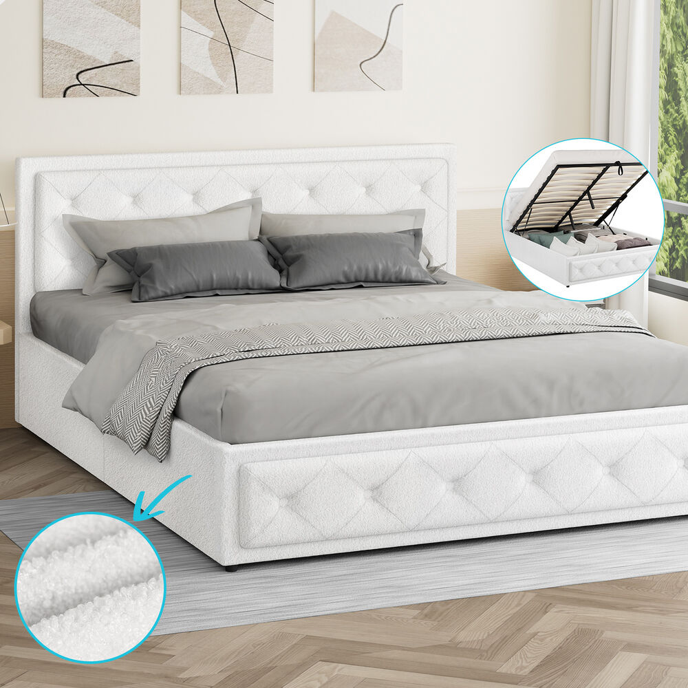ALFORDSON Bed Frame Queen Size Gas Lift Storage Base Boucle Fabric White